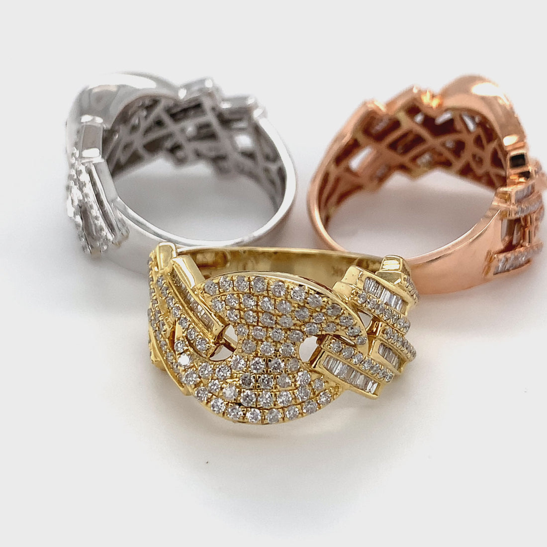 14k Gold Diamond Cuban Link Ring (2 rows)