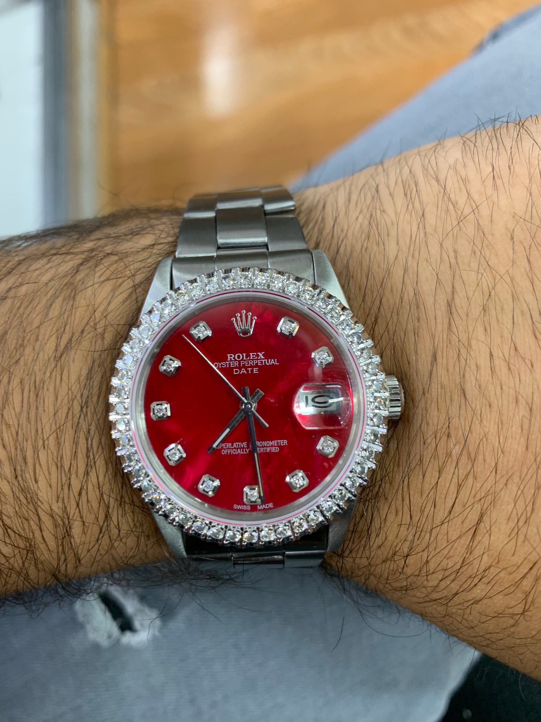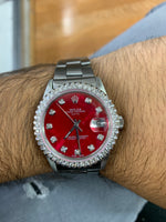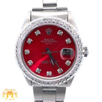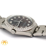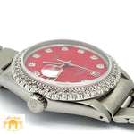 Unit price per- Preowned 34 mm Rolex Date with round diamond bezel.