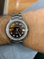 - Mother of pearl ( MOP ) custom dial with diamond hour marks.