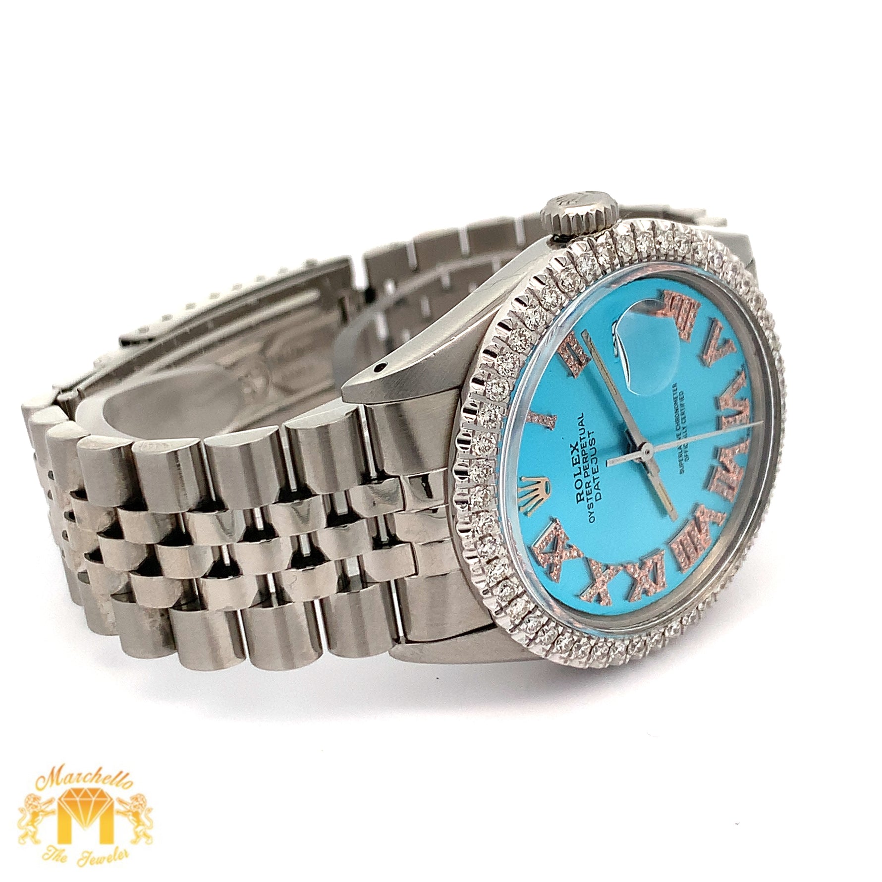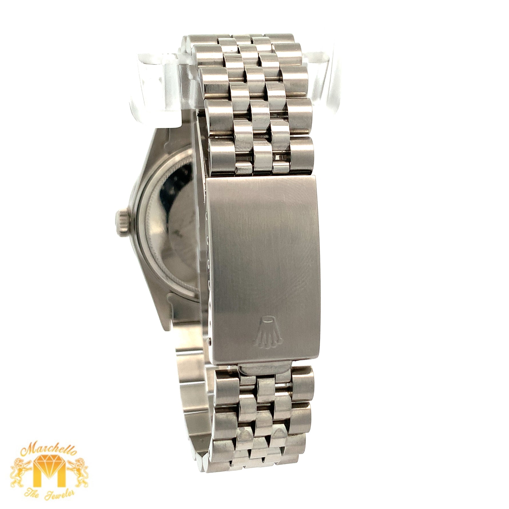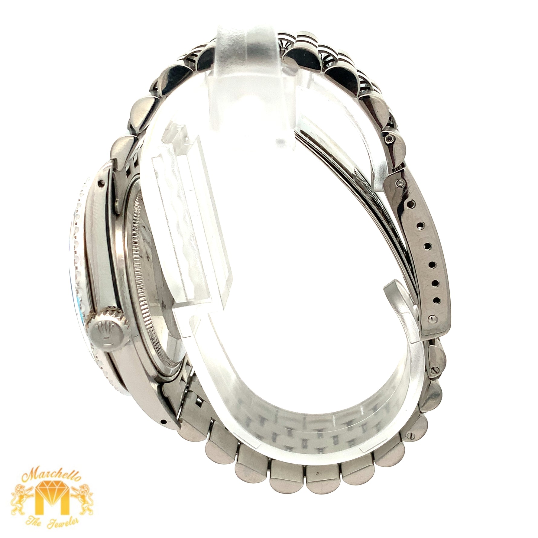Disclaimer: Marchello the Jeweler Inc. is an independent seller of preowned Rolex watches and is not an authorized Rolex dealer. Addition of non-Rolex parts voids Rolex warranty: Rolex will not service watches containing non-Rolex parts. Marchello the Jeweler Inc. is the sole warrantor of such watches for one year.