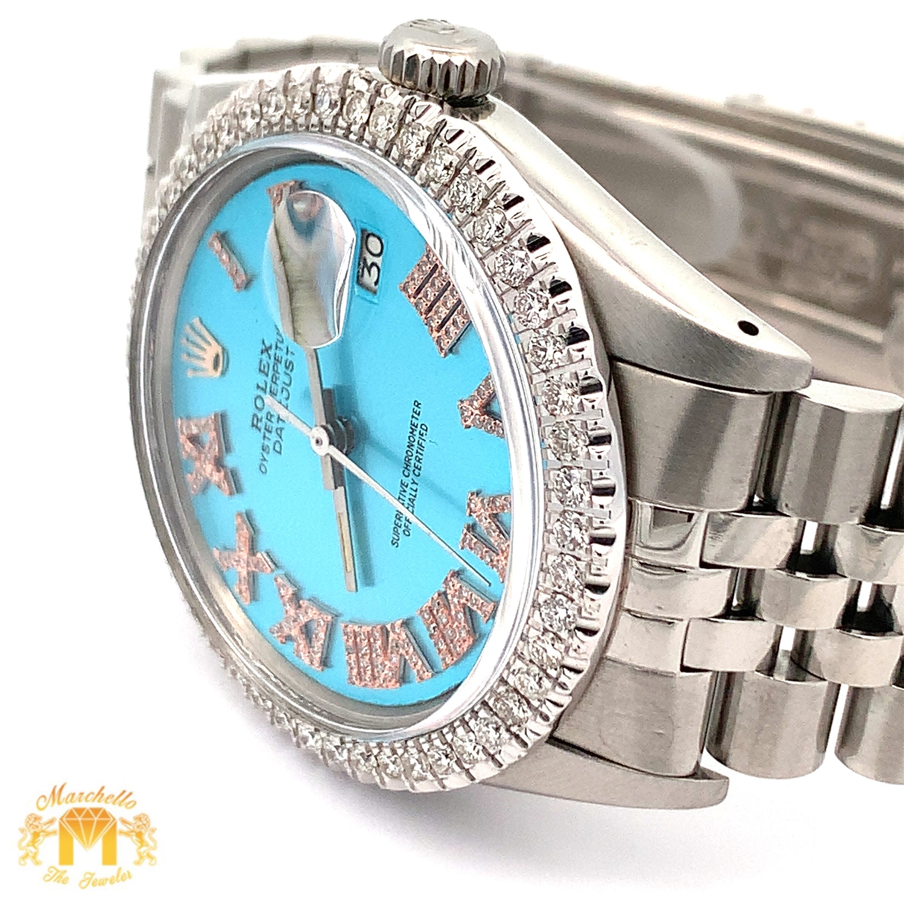 - Custom diamond dial and bezel by customer request.