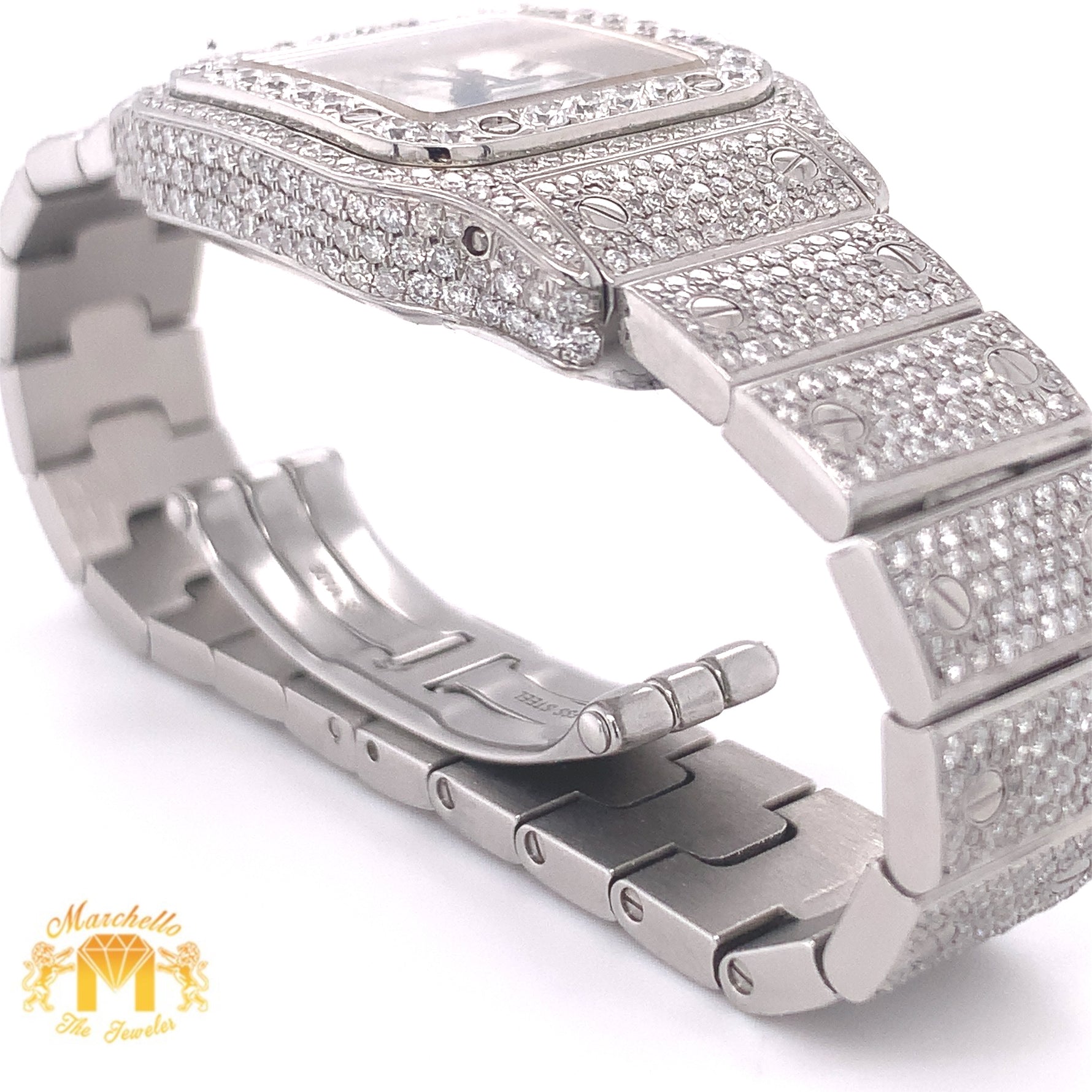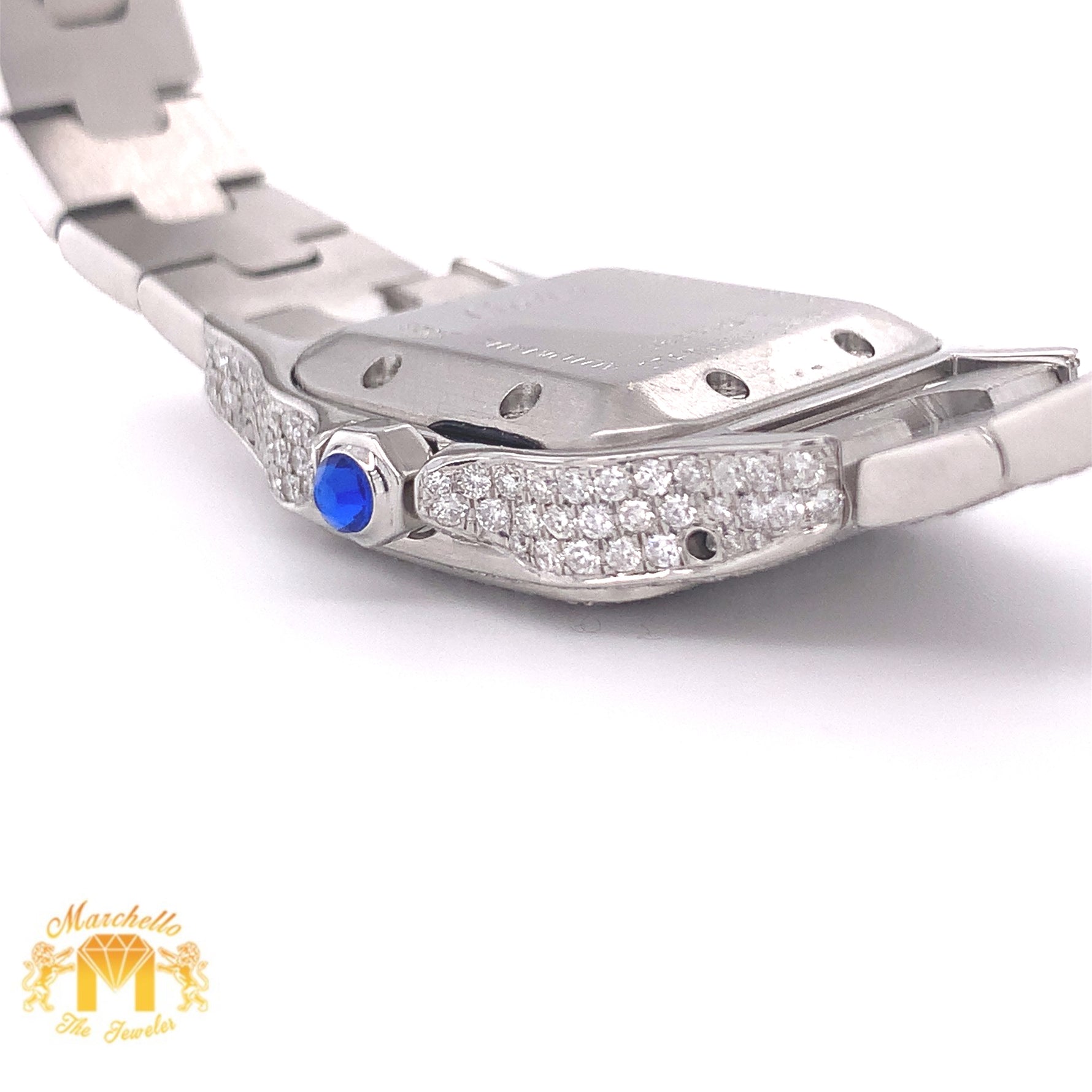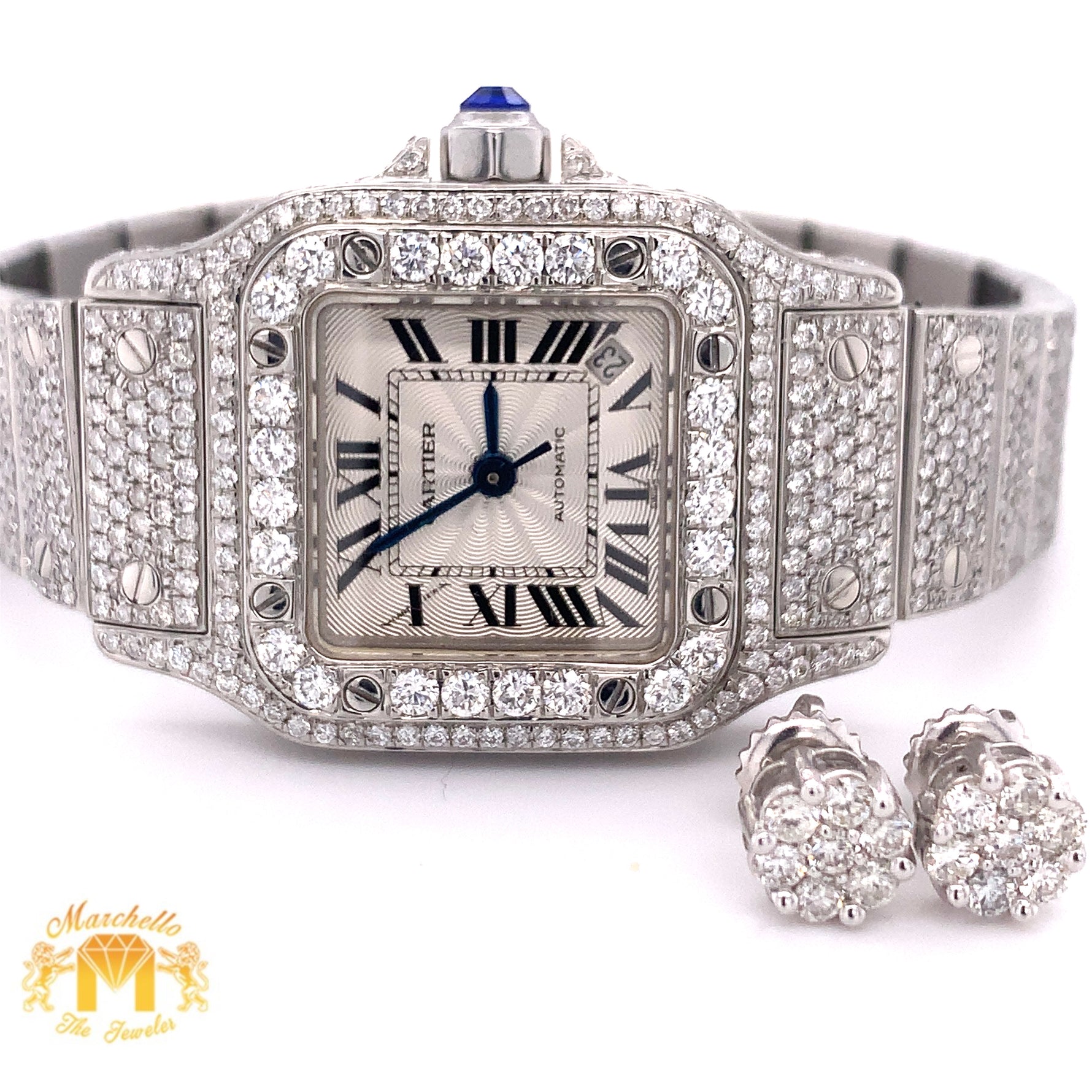 8ct Diamond Iced Out Cartier Santos Ladies’ Watch + Flower-shaped Diamond Earrings (24 mm, stainless steel)