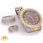 9.5ct Iced out Rolex Watch + Diamond Ring + Diamond Earrings Set
