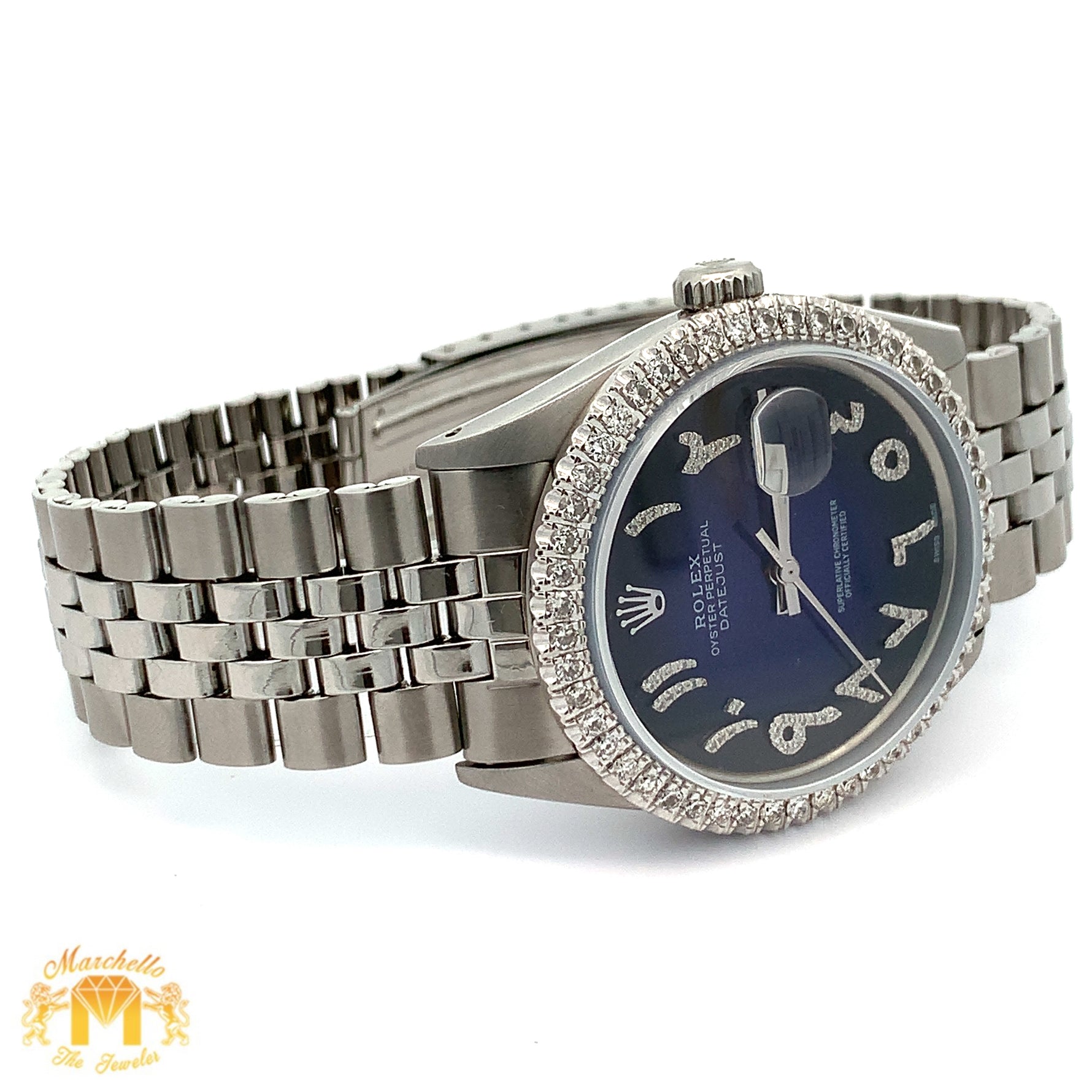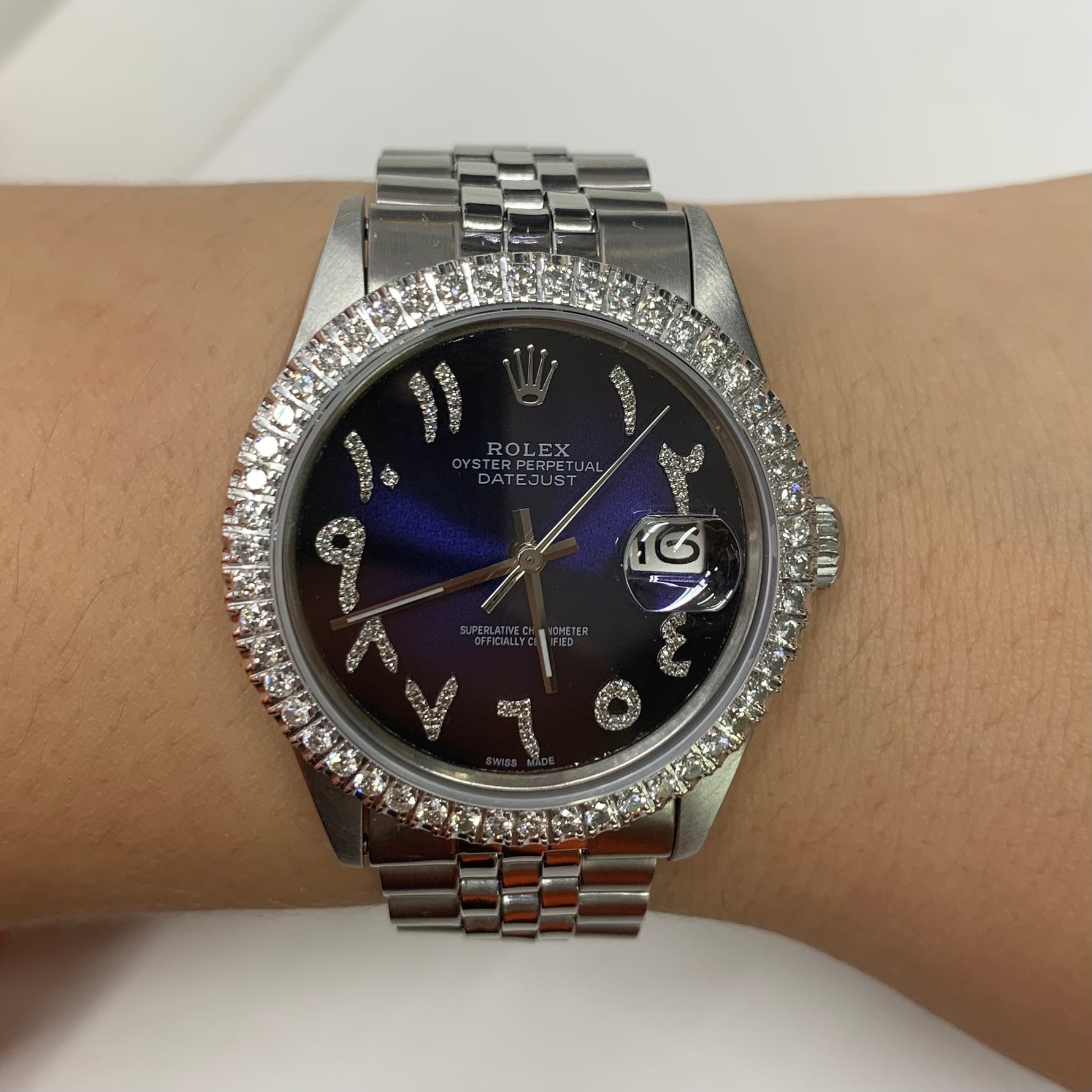 Unit price per- Preowned 36 mm Rolex Datejust with diamonds on bezel and dial.