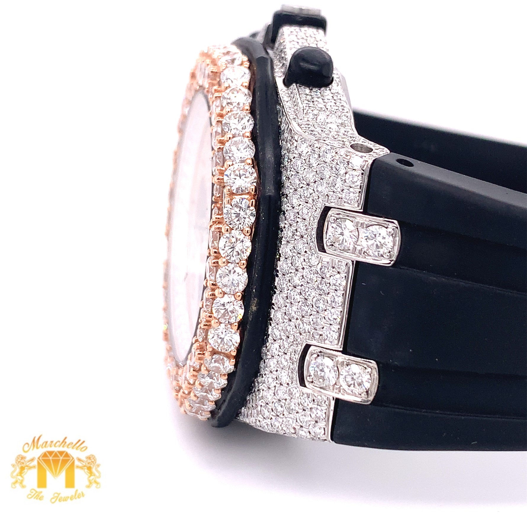 Iced Out Audemars Piguet AP Diamond Watch and 1ct Diamond Earrings (42 mm, rubber band)