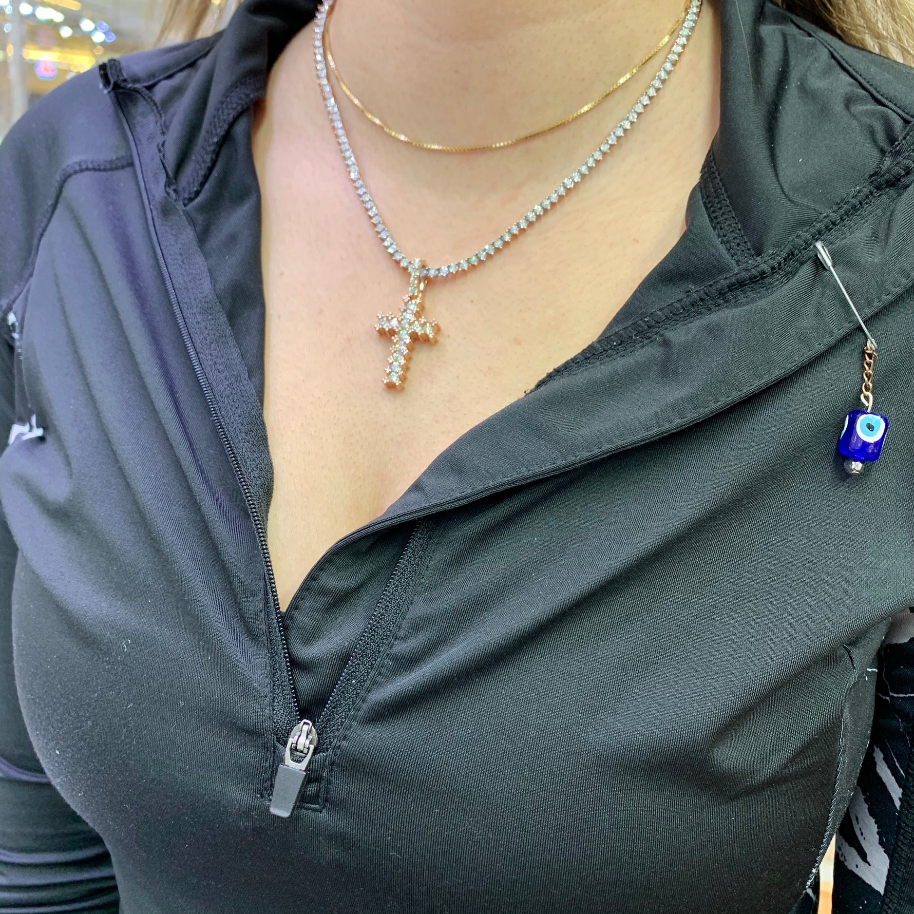 3.9ct Diamond and Gold Tennis Chain and 14k Gold Cross Pendant Set (1 pointers, large diamonds on pendant)