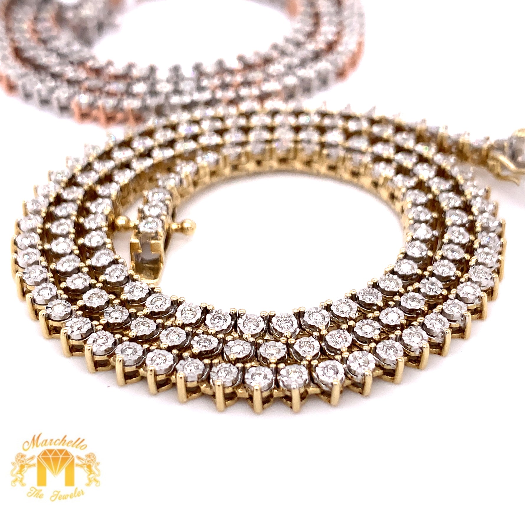 - Chain is 10k white, yellow, or two-tone white & rose gold and approximately 2ct diamond (at 24 inches).