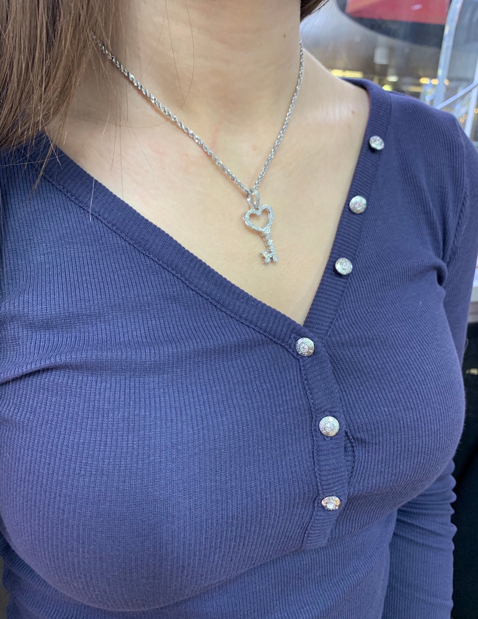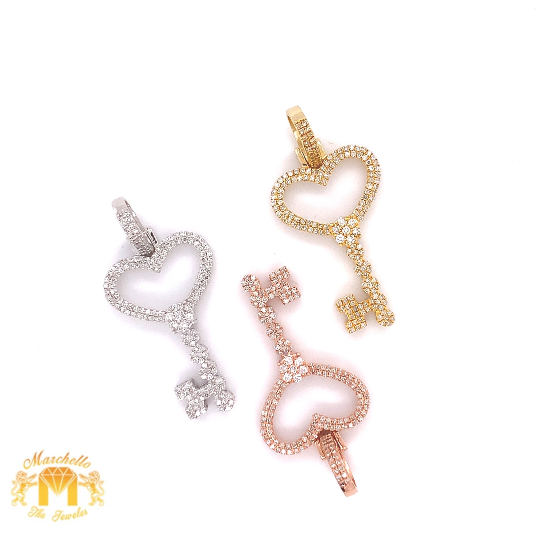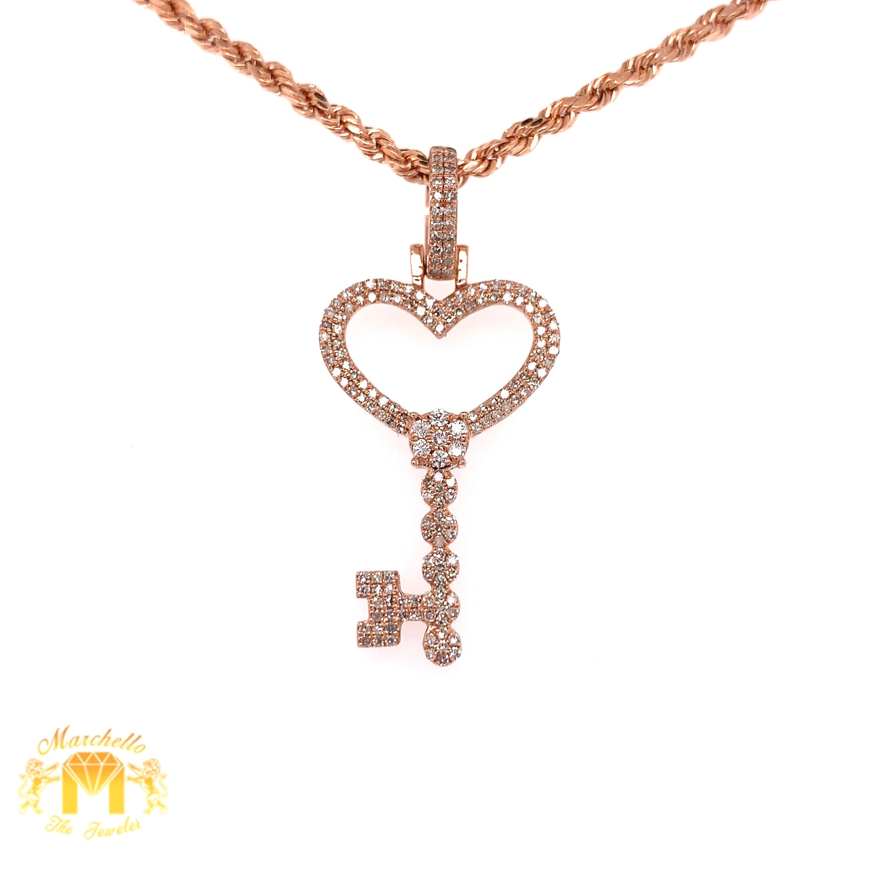 Diamonds and 14k Gold Key Pendant & Gold Rope Chain Set