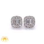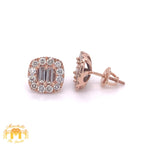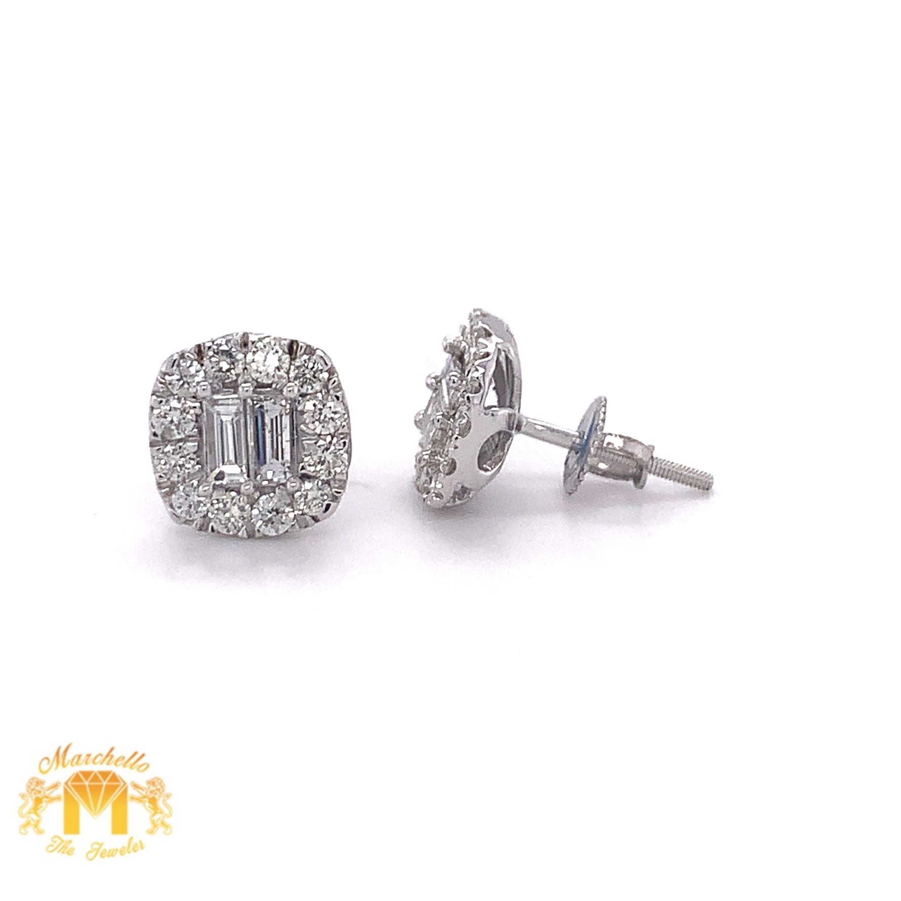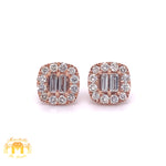 14k Cushion-shaped Earrings with Baguette & Round Diamond (signed piece)