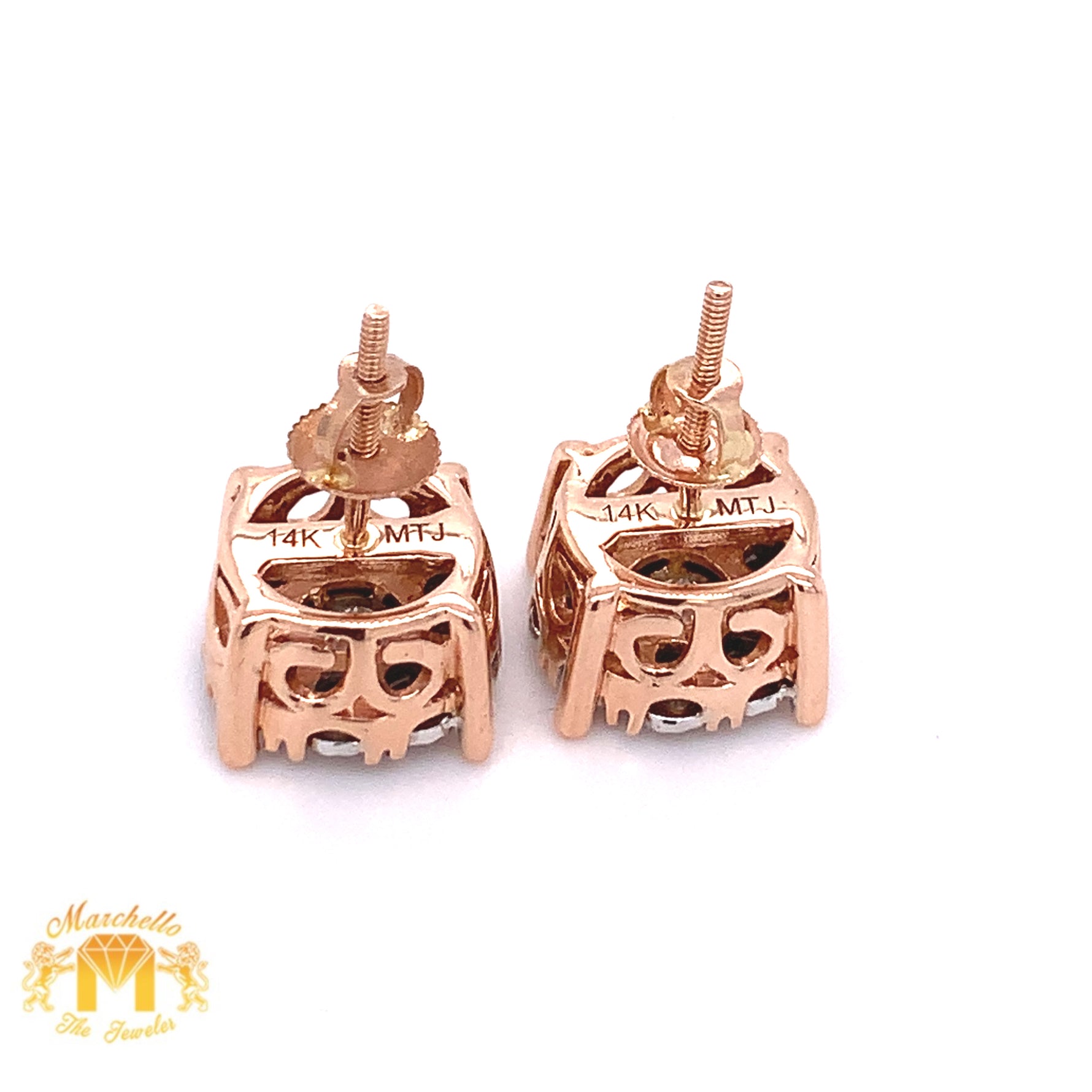Round Diamonds and 14k Gold Large Round Earrings (illusion setting, 3D)