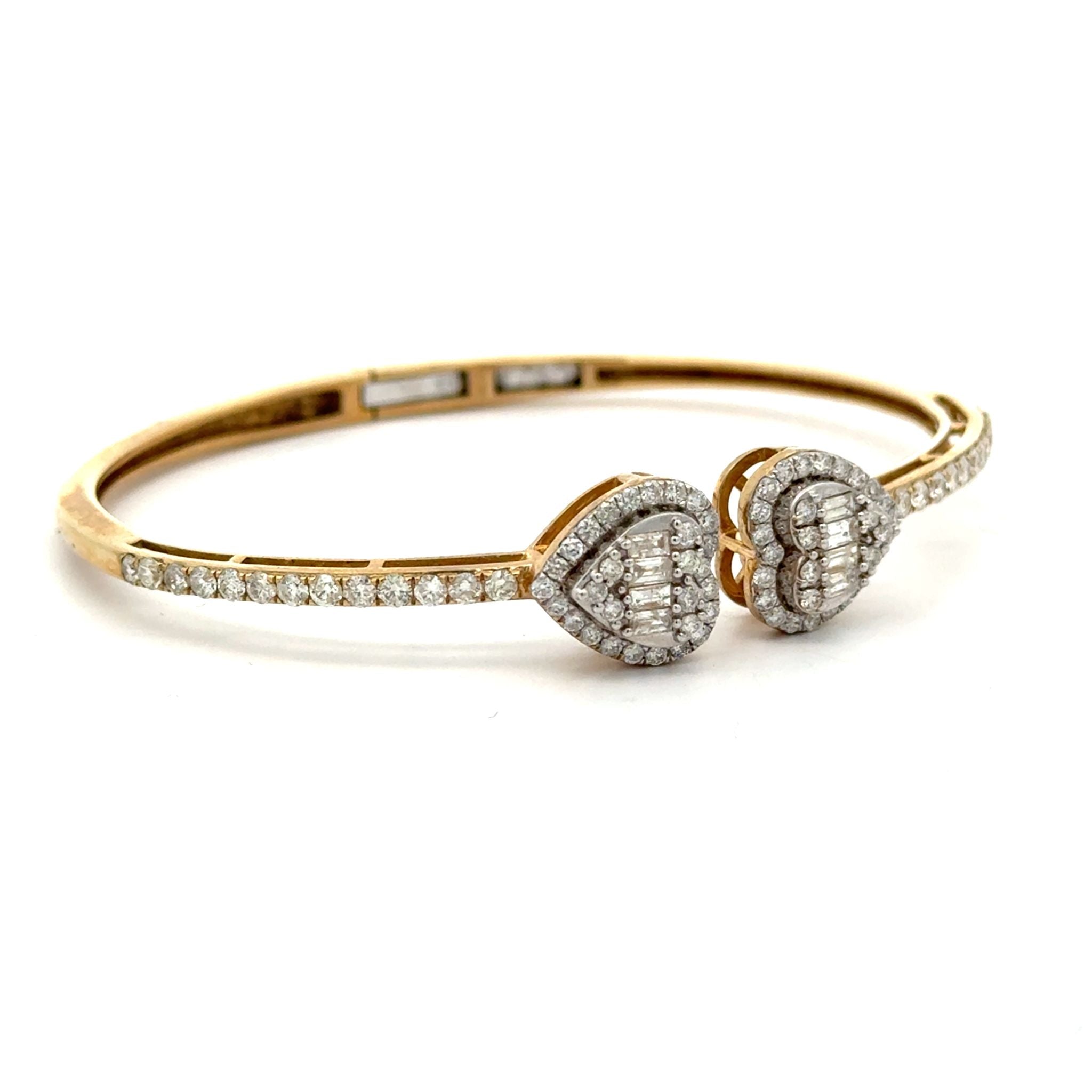Gold and Diamond Twin Heart Bangle Bracelet (choose your color)