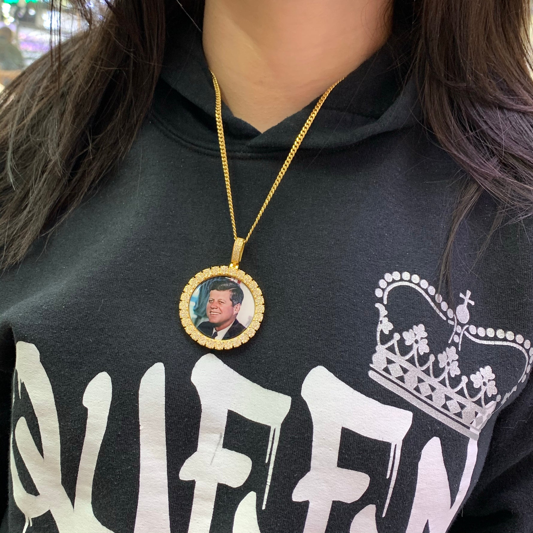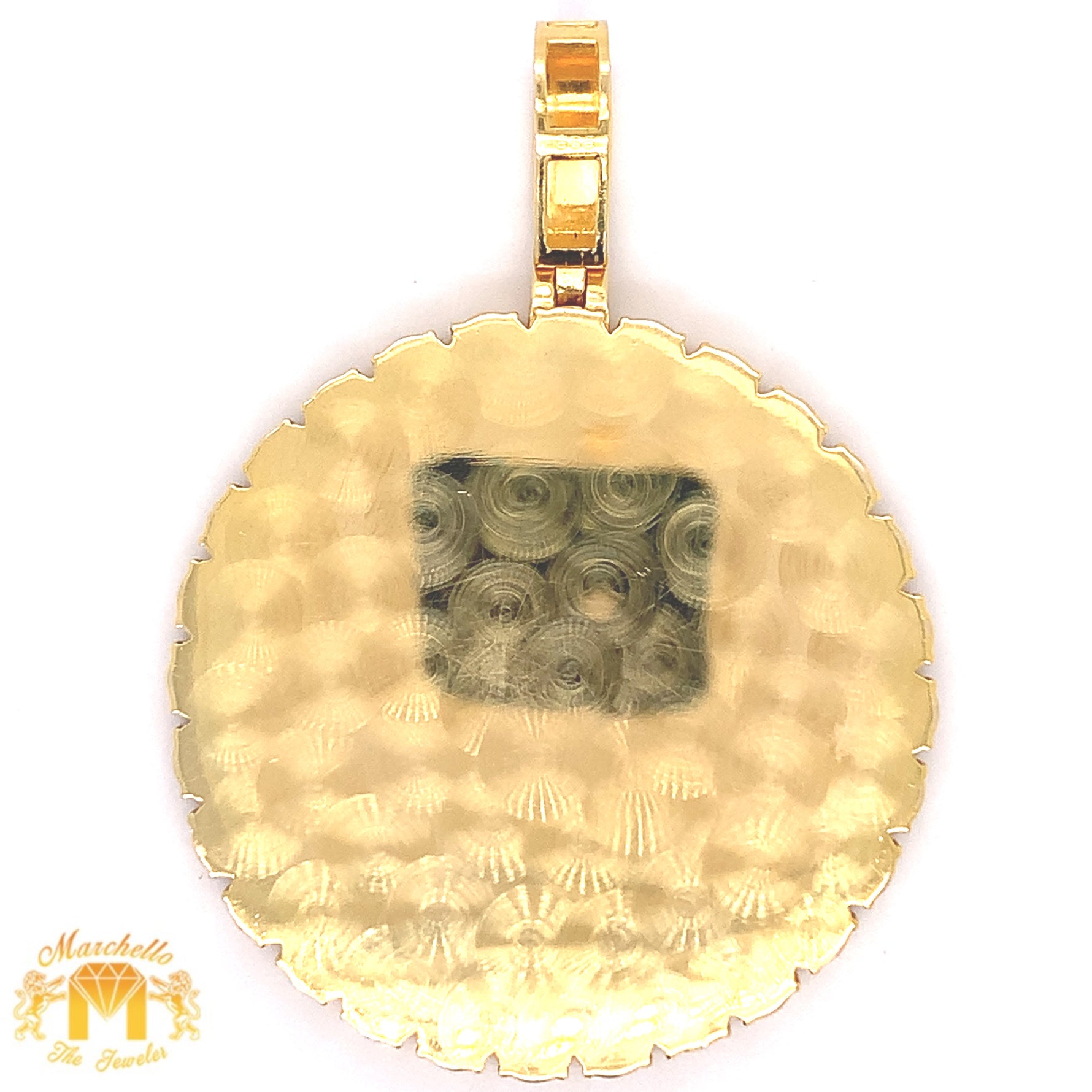 14k Gold Memory Picture Pendant with Round Diamond and Gold Cuban Link Chain Set