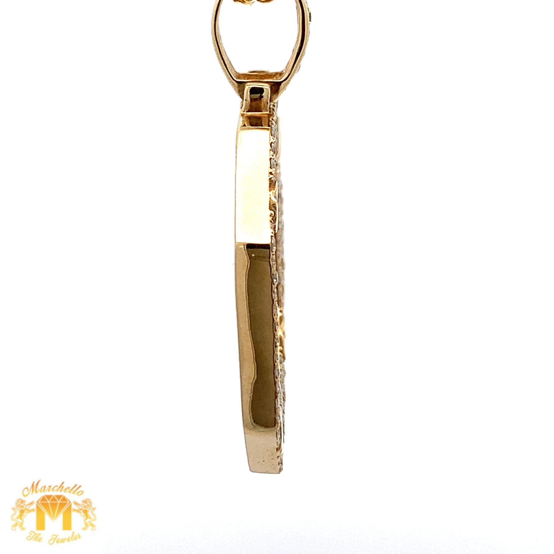 - Charm is 10k yellow gold and natural round diamonds.