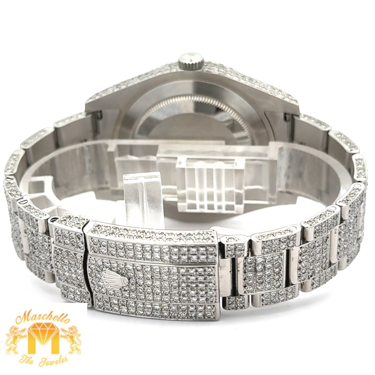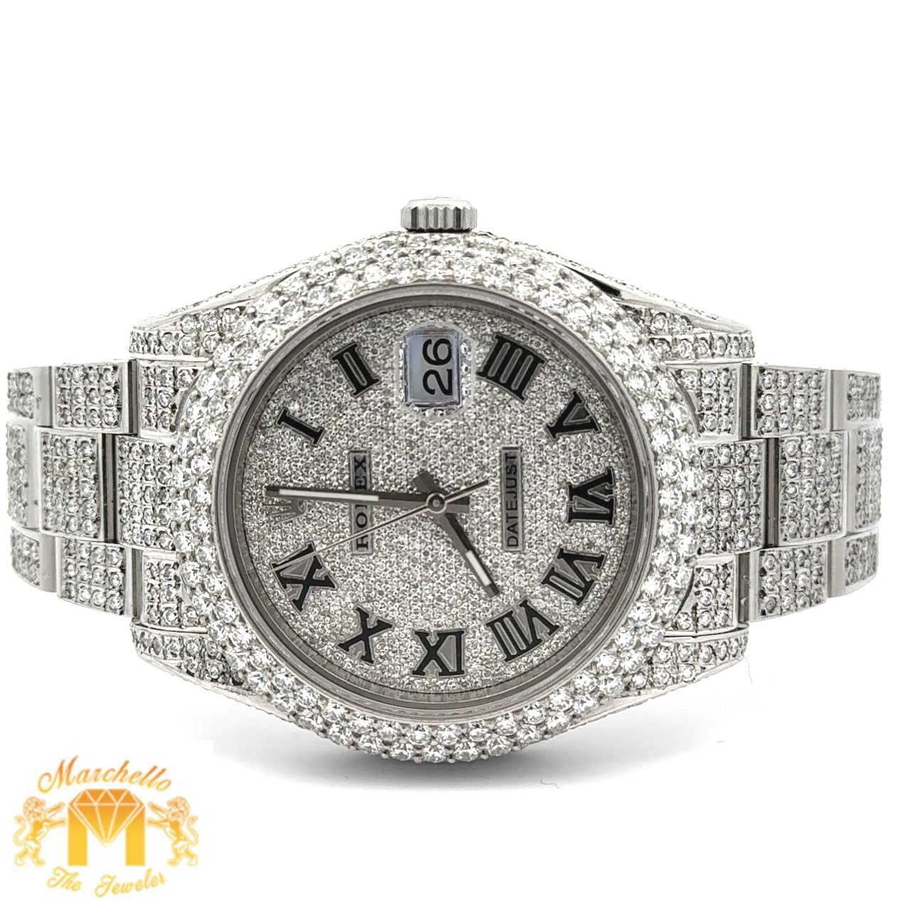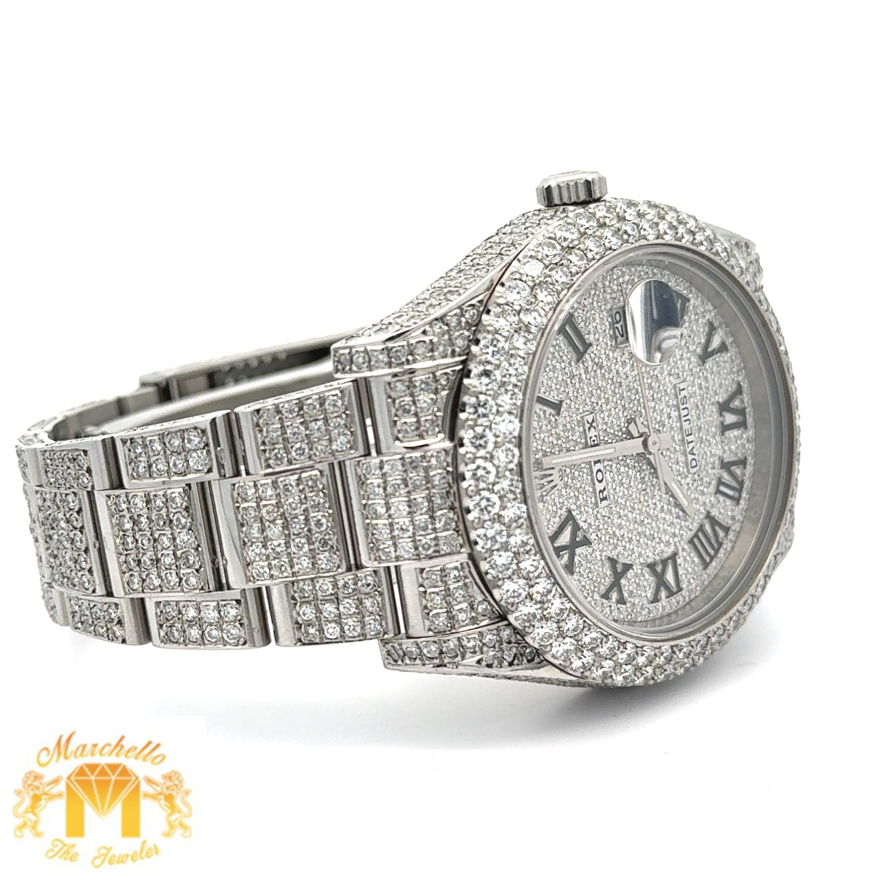 Disclaimer: Marchello the Jeweler Inc. is an independent seller of preowned Rolex watches and is not an authorized Rolex dealer. Addition of aftermarket diamonds voids Rolex warranty. Marchello the Jeweler Inc. is the sole warrantor of these watches for one year.