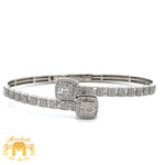 10k White Gold Twin Squares Cuff Diamond Bracelet with Baguettes and Round diamonds.
