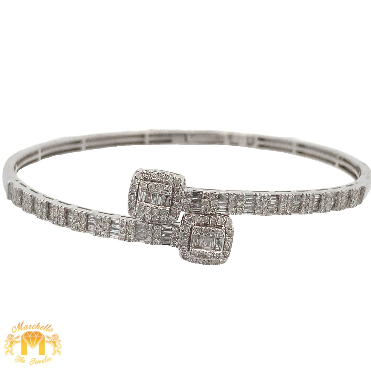 10k white gold square shaped bangle with 1.53ct of baguettes and round diamonds.