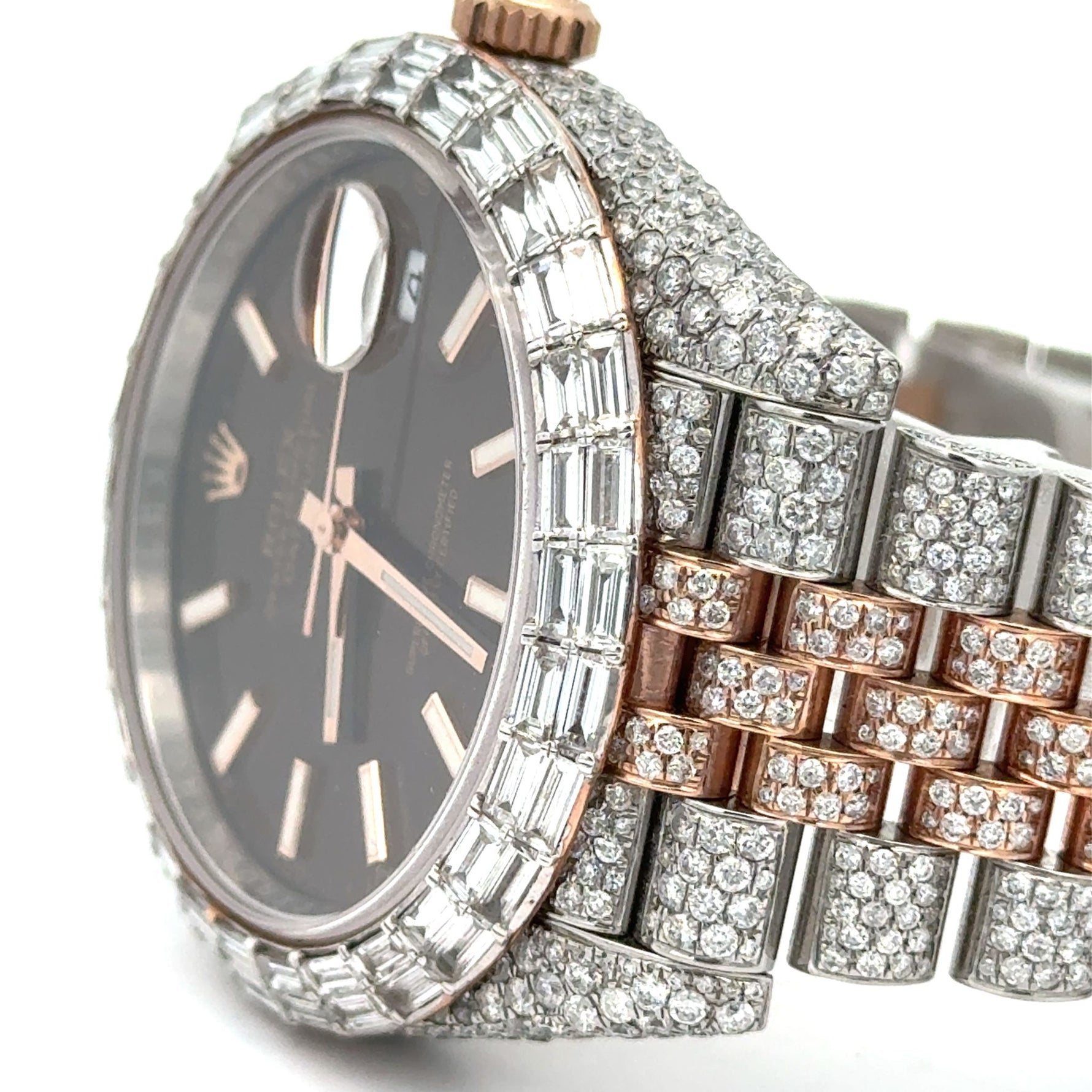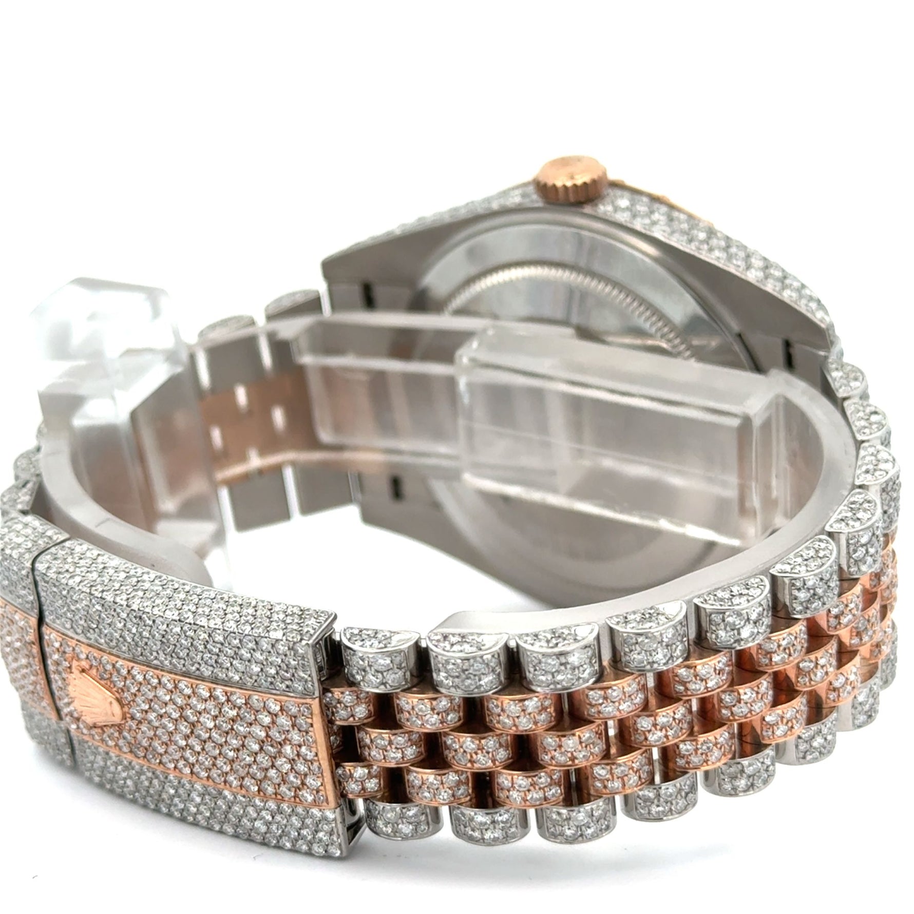 41mm Iced Out Rolex Datejust Watch with Two-Tone Jubilee Band + 14K Rose Gold Diamond Ring – 4-Piece Luxury Jewelry Set