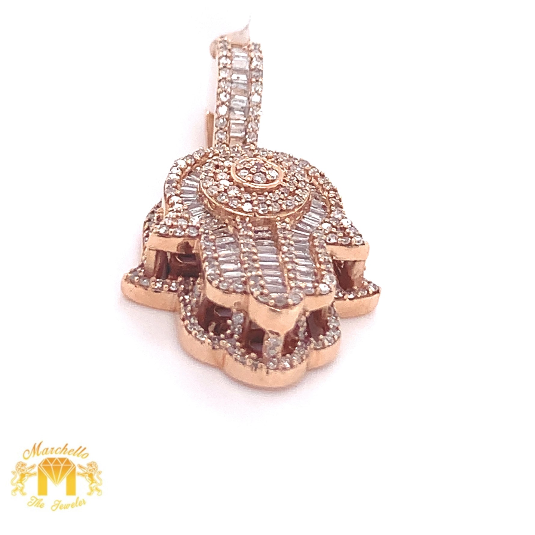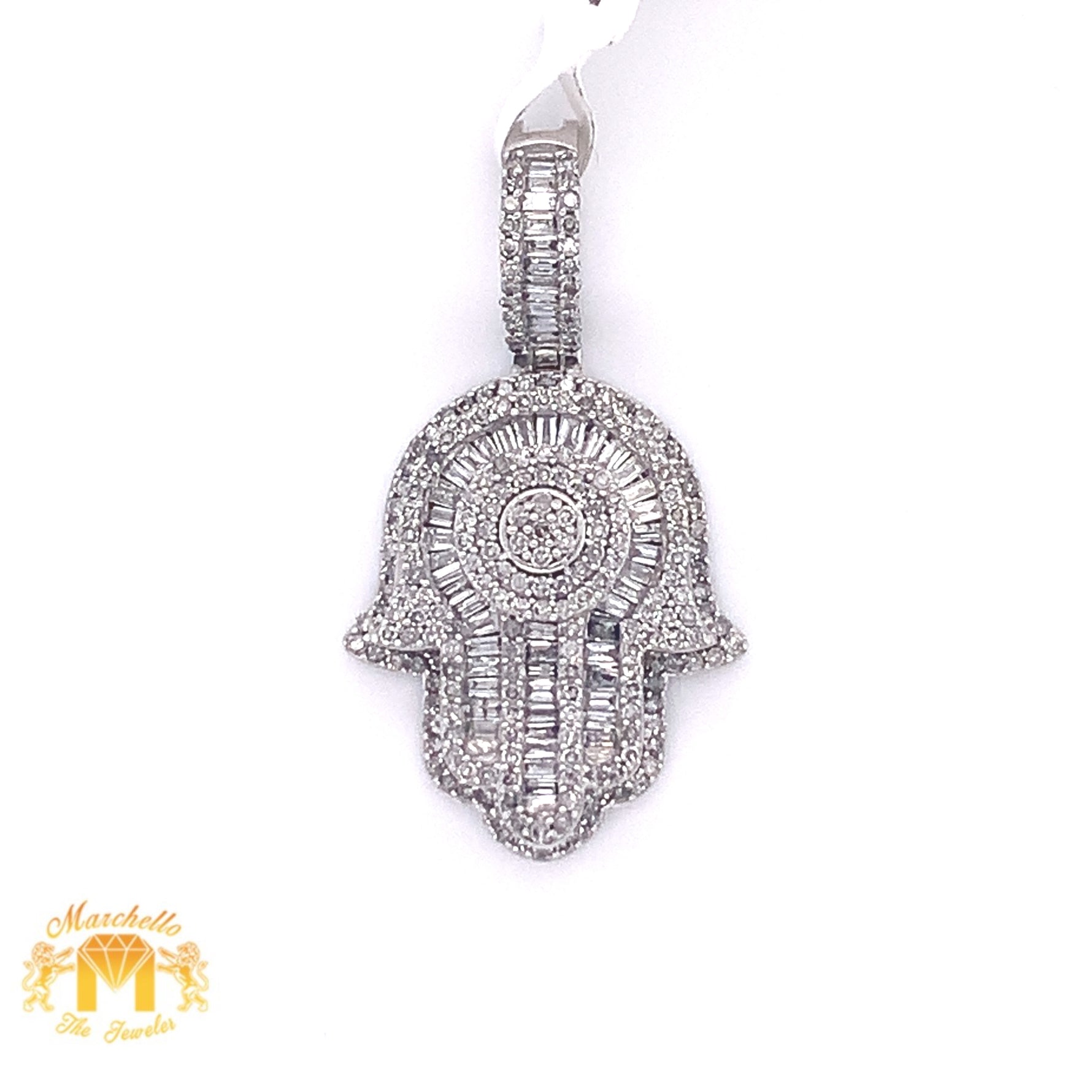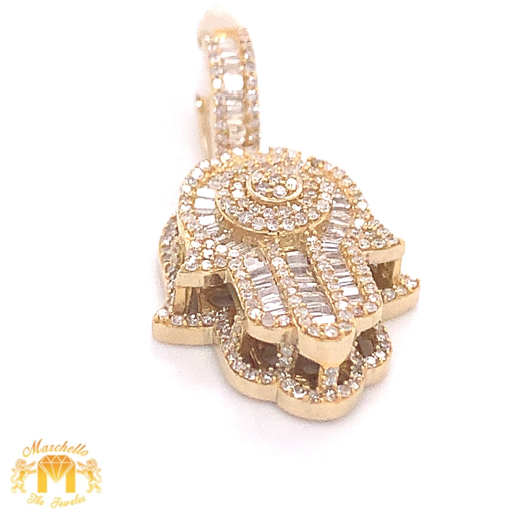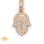 14k Gold Hamsa Pendant with Baguette Diamond & Gold Cuban Link Chain