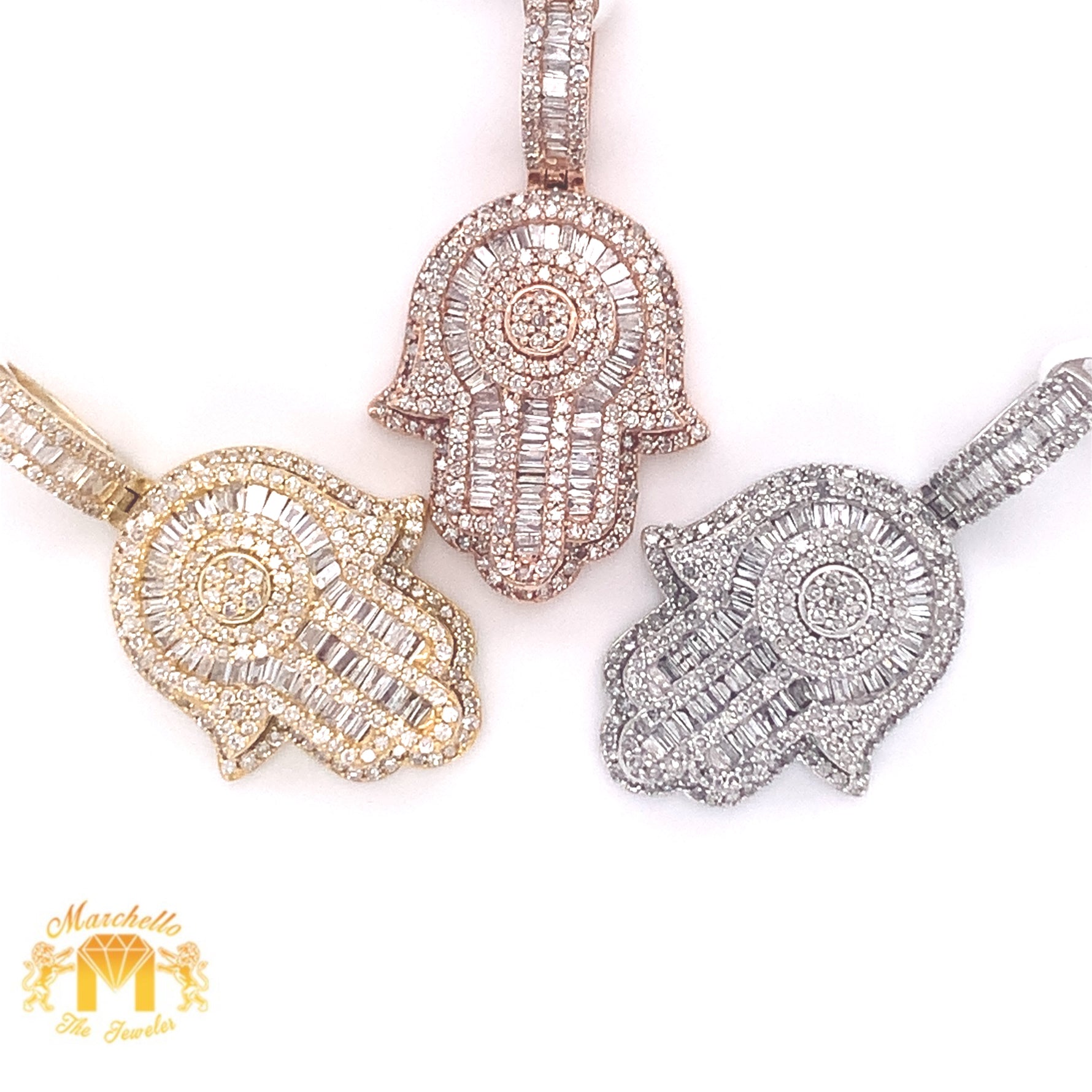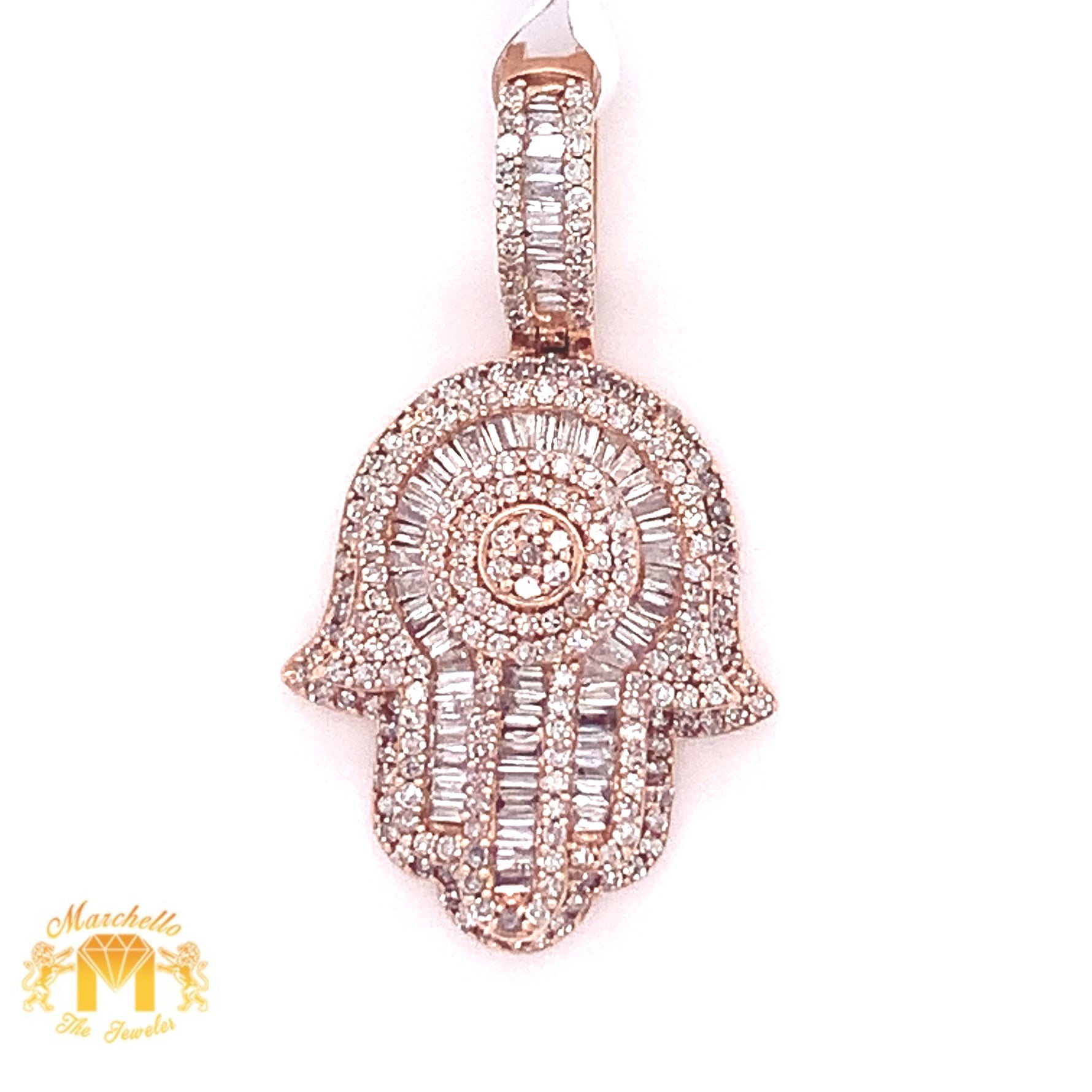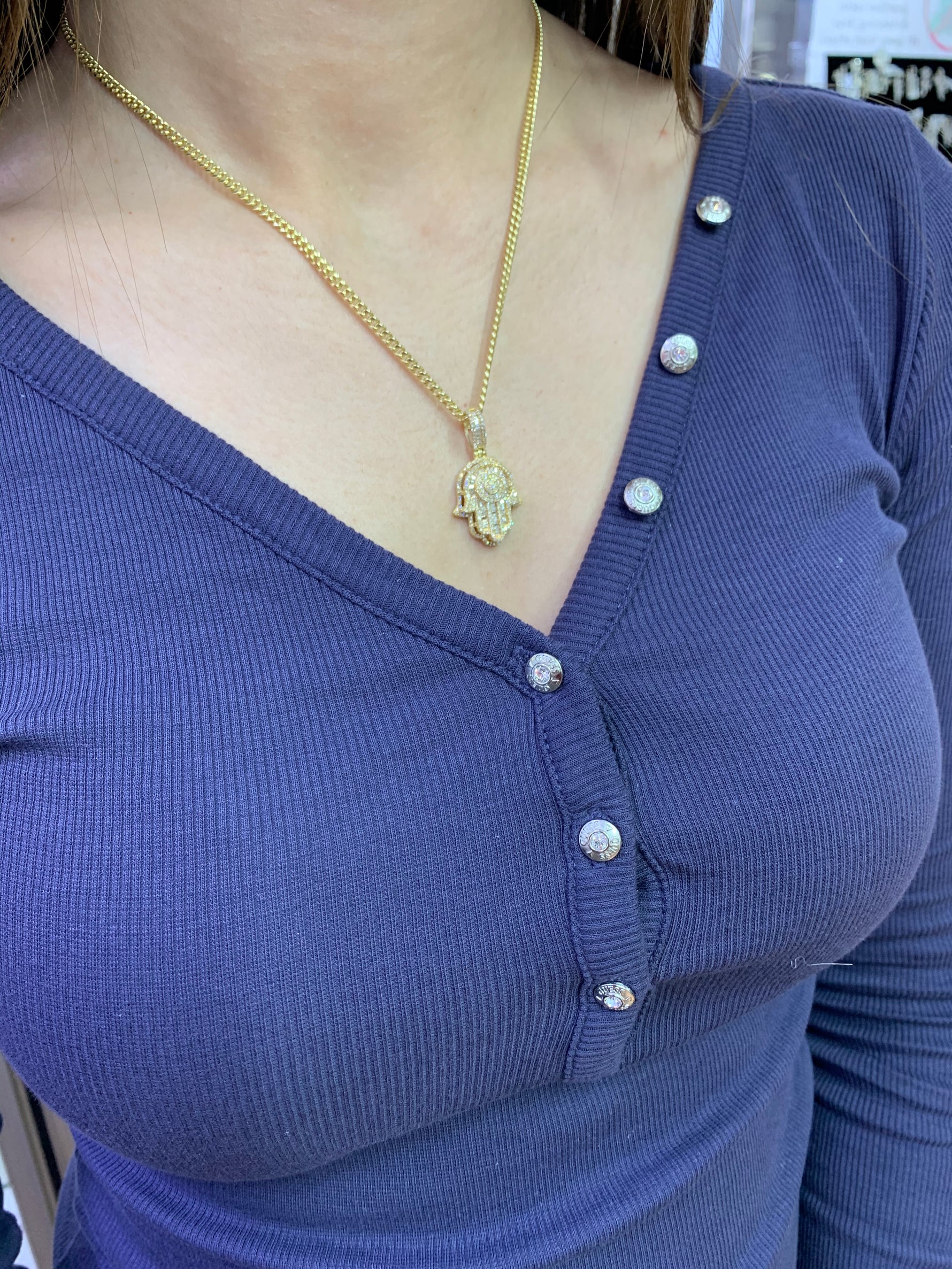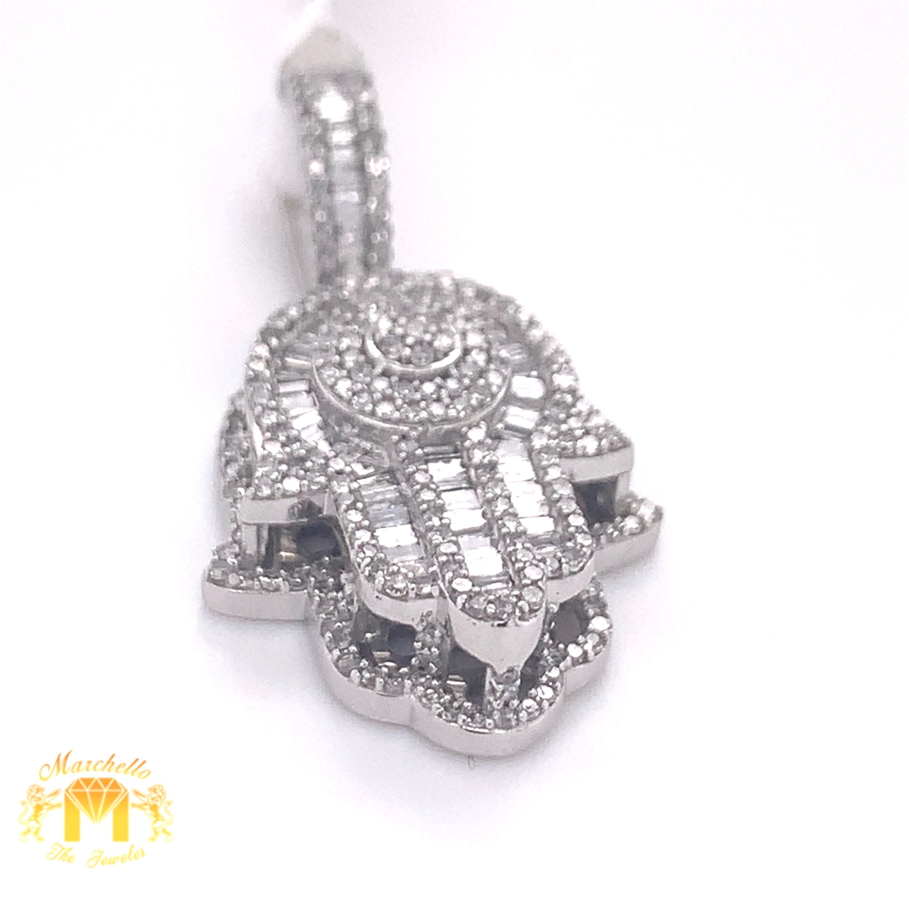 14k Gold Hamsa Pendant with Baguette Diamond & Gold Cuban Link Chain