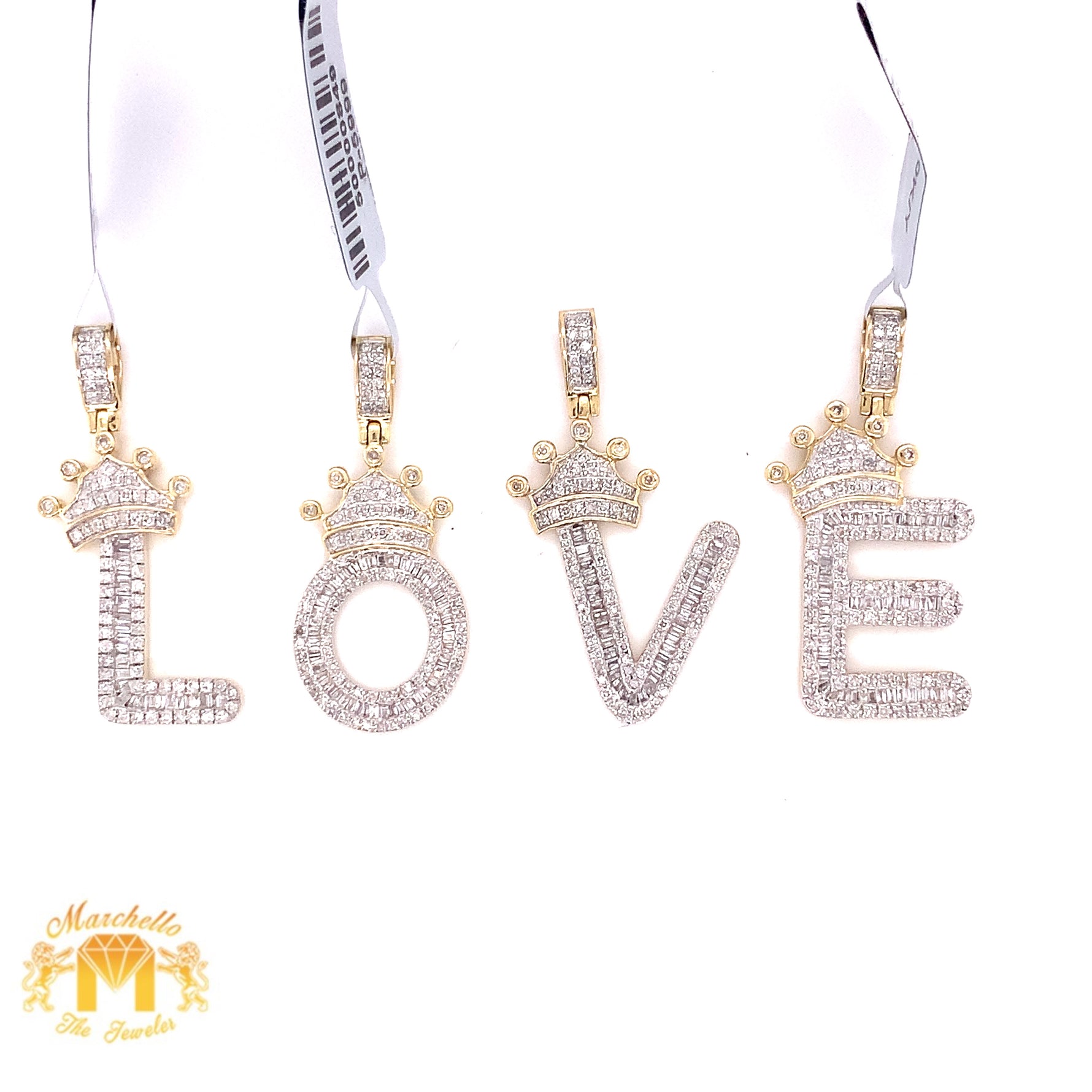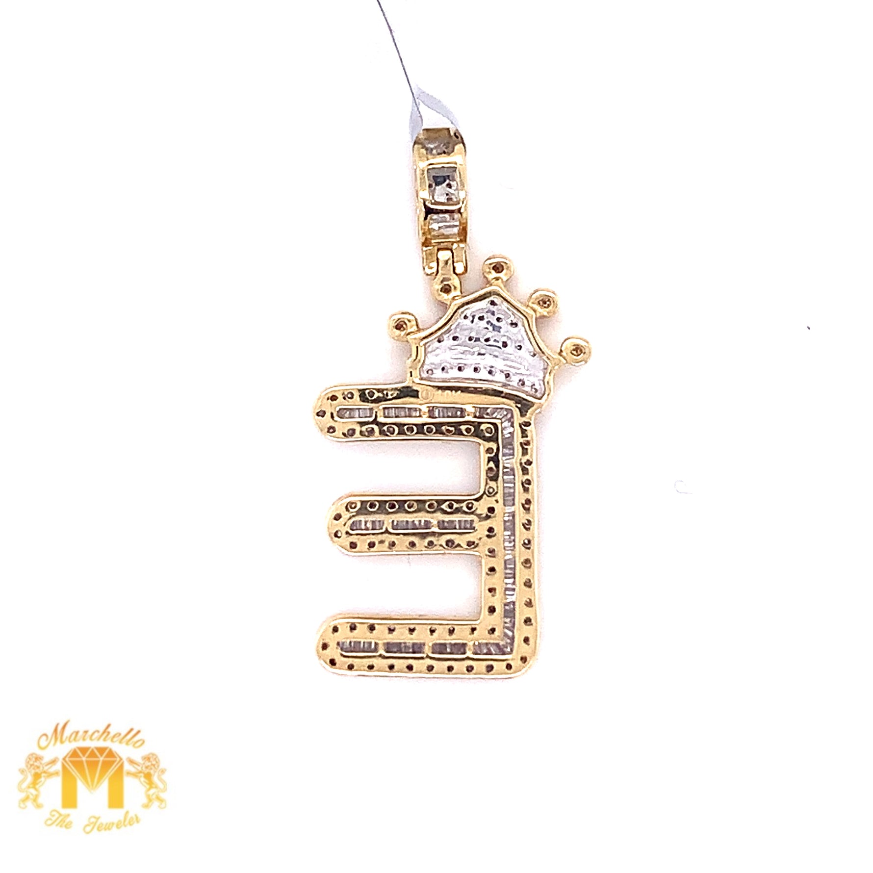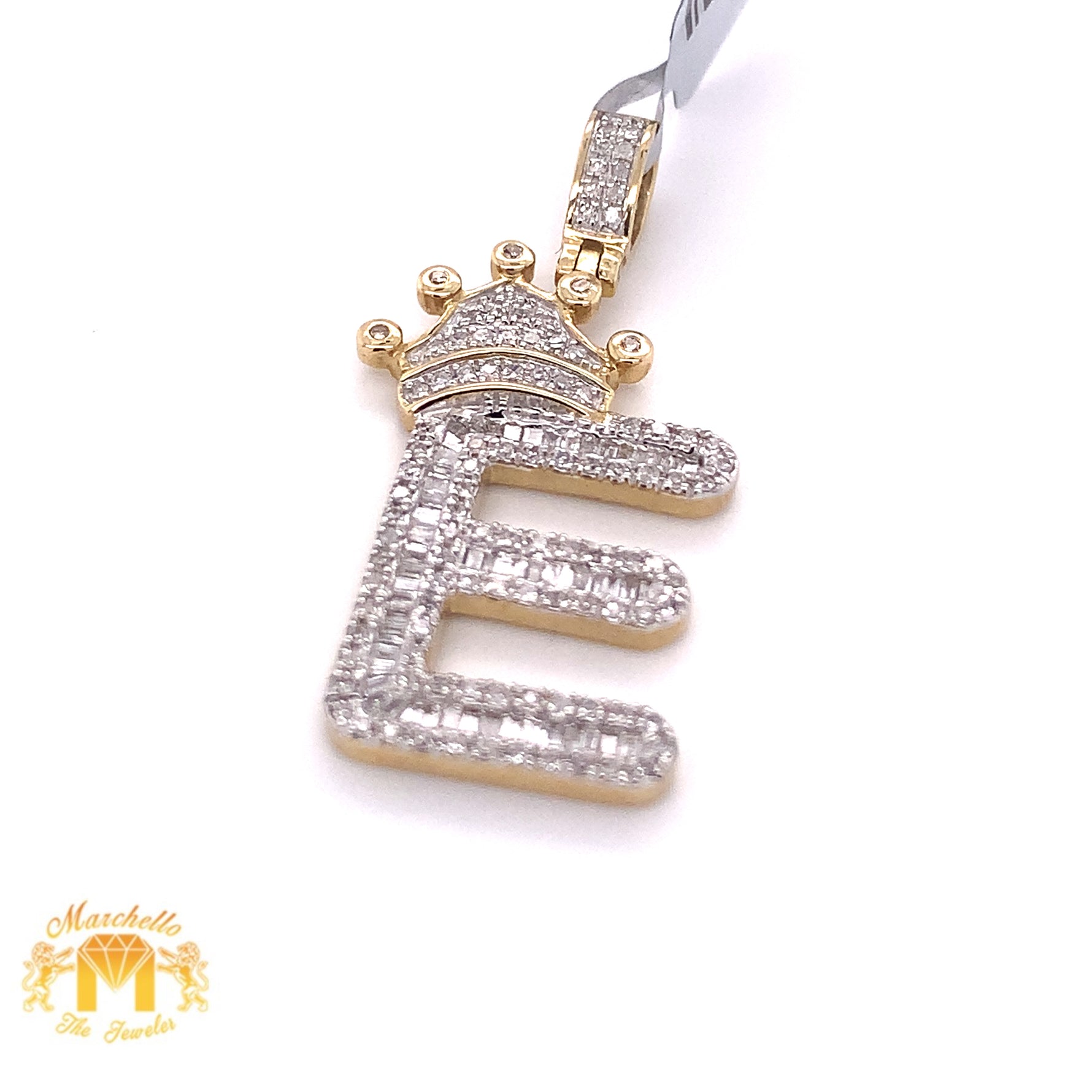 Baguette Diamond and Gold Initial Pendant & Cuban Link Chain Set