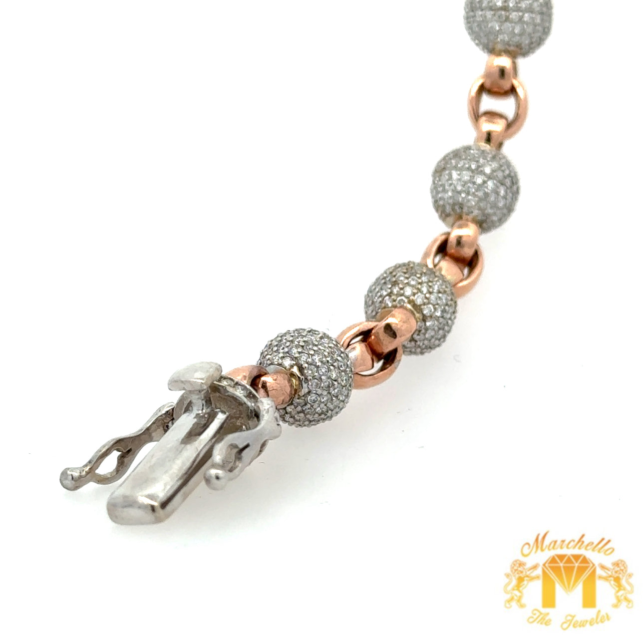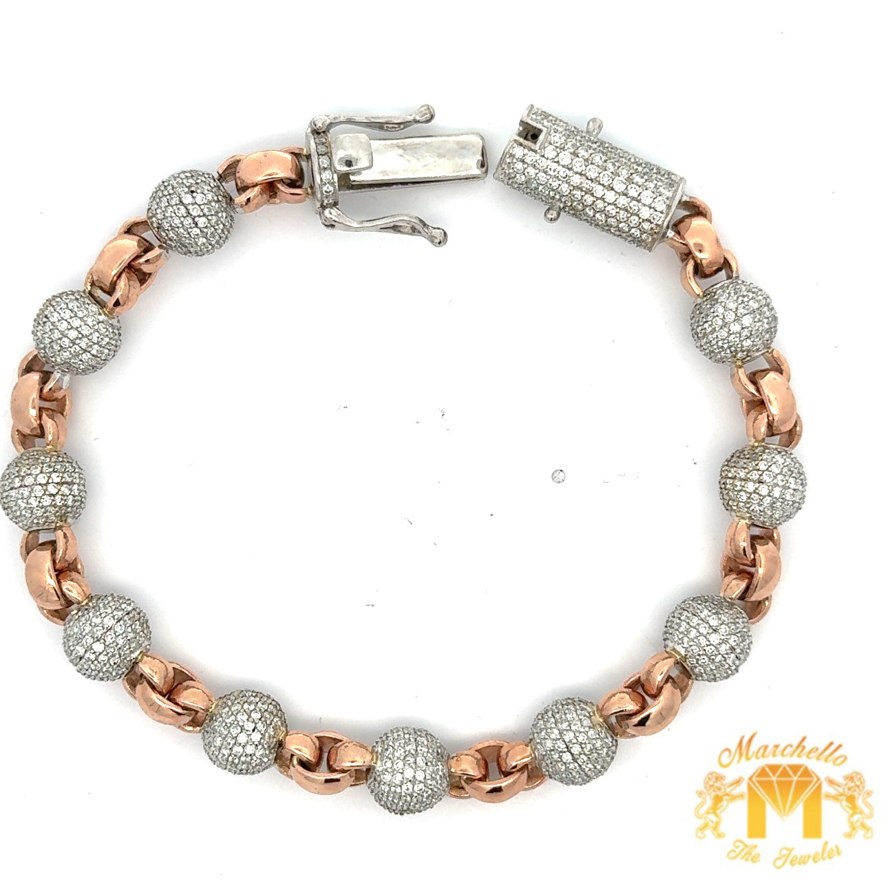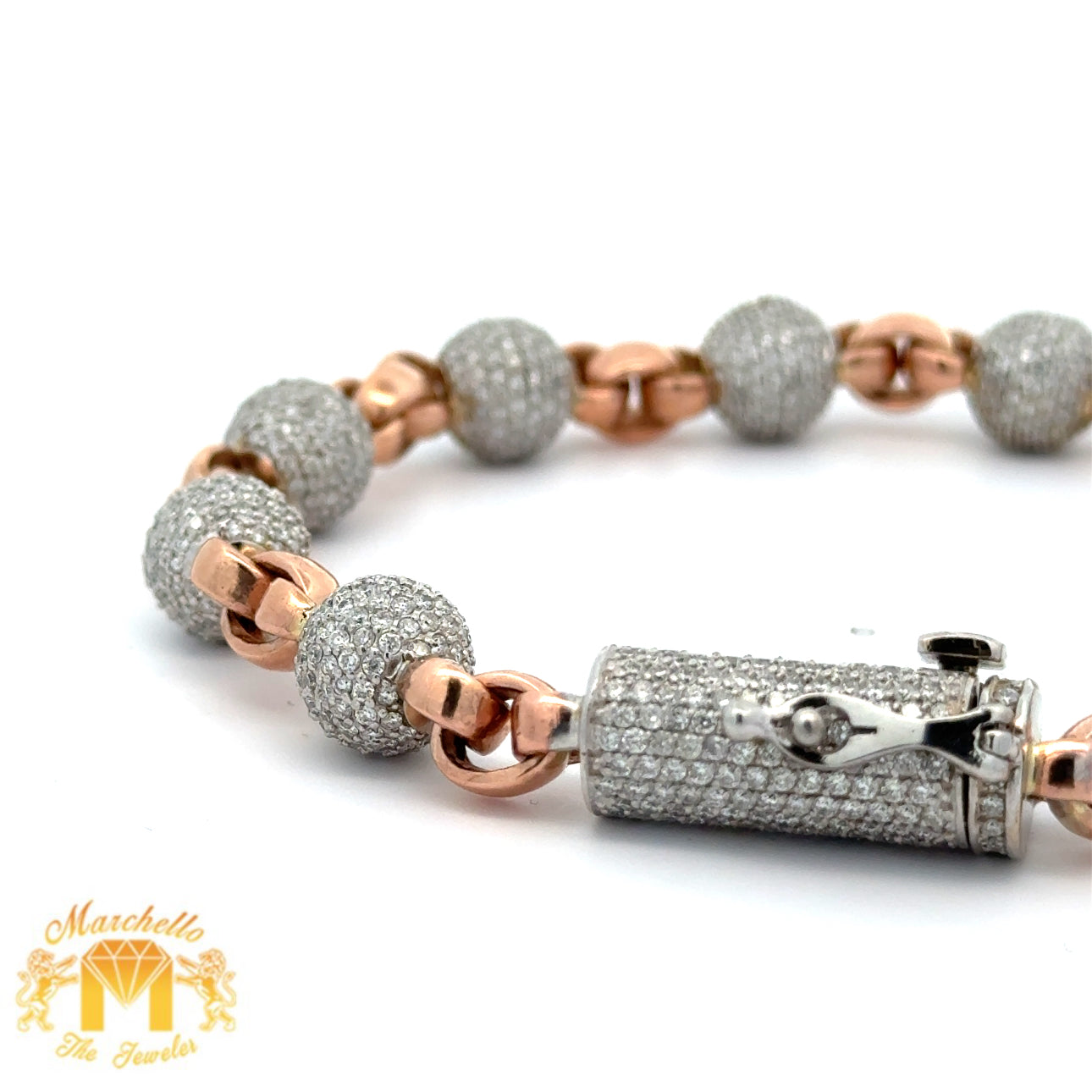 10.5ct diamonds 14k solid Rose Gold Beaded Bracelet with Round Diamonds