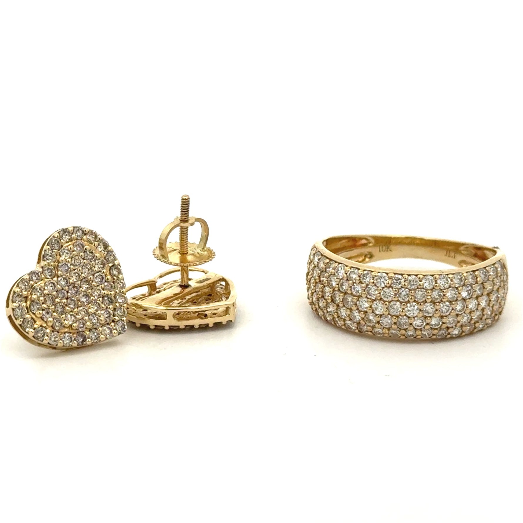 10K Yellow Gold Diamond Heart Earrings & Ring Set – 3-Piece Jewelry Collection | Marchello the Jeweler