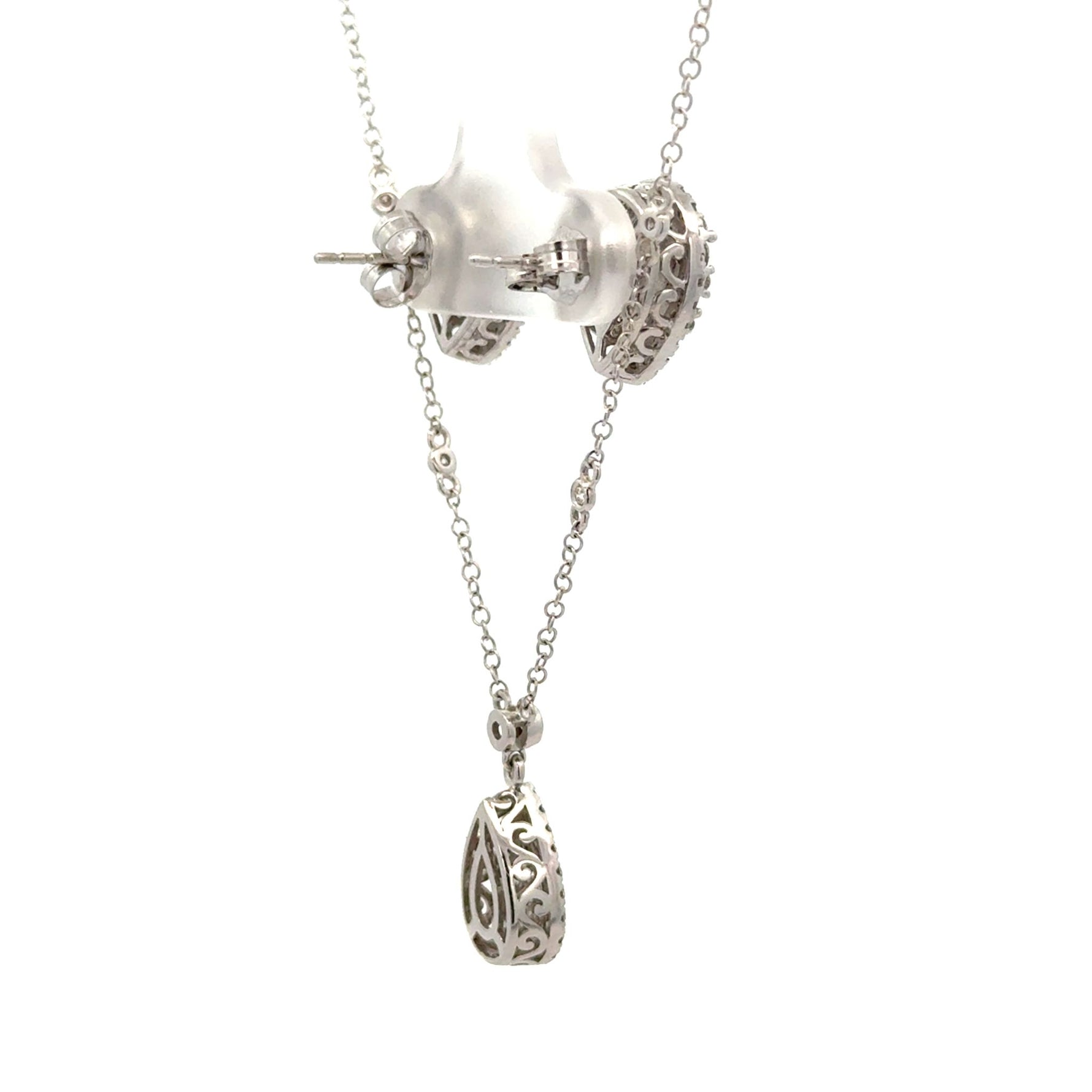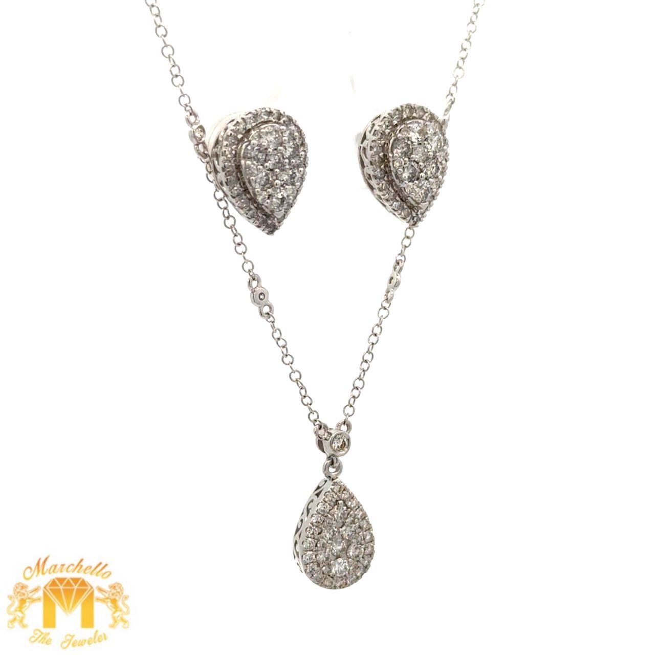 14k white gold and diamond Pear shape Necklace and 10k gold and diamond Pear shape Earrings