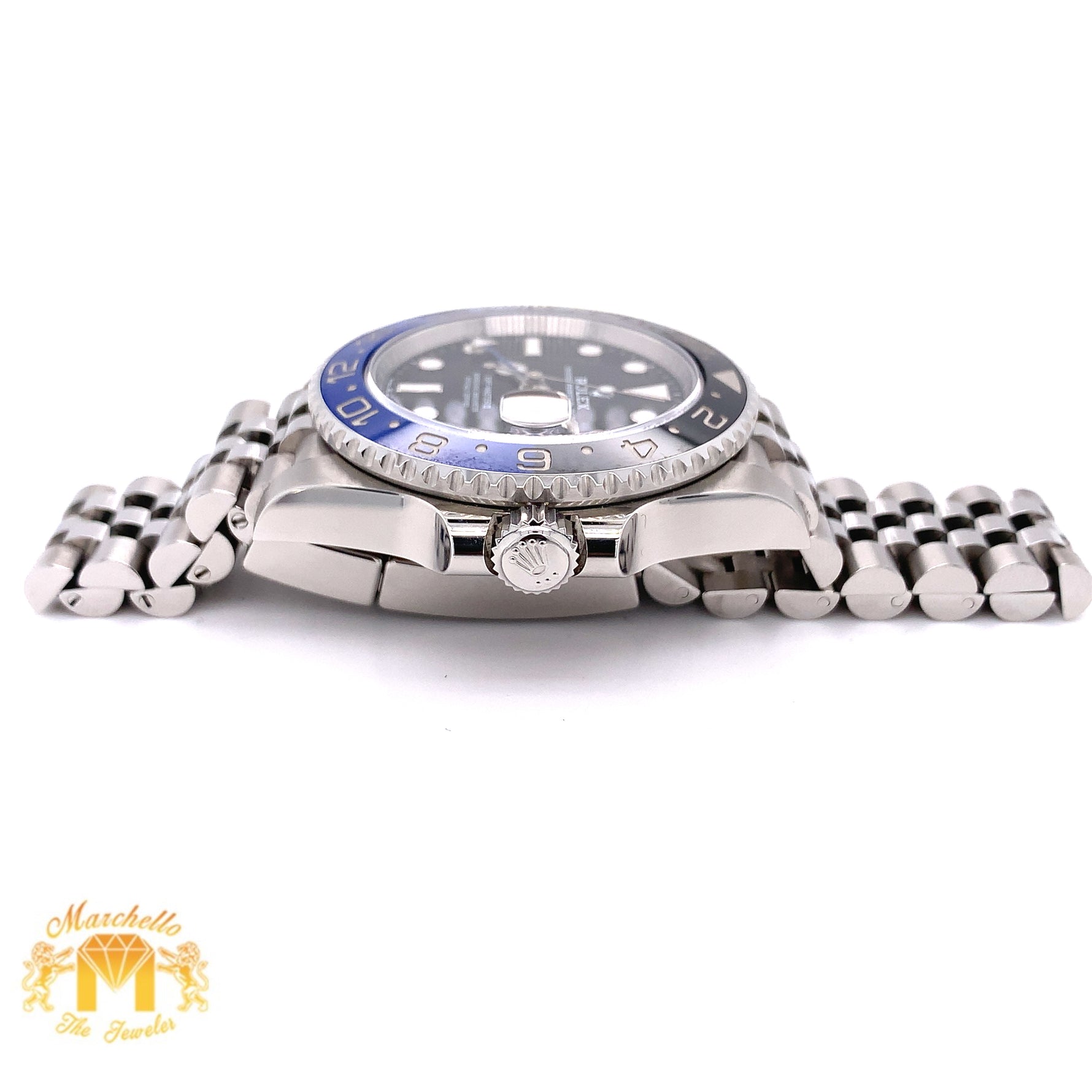 Disclaimer: Marchello the Jeweler Inc. is an independent seller of preowned Rolex watches and is not an authorized Rolex dealer. Addition of non-Rolex parts voids Rolex warranty: Rolex will not service watches containing non-Rolex parts. Marchello the Jeweler Inc. is the sole warrantor of such watches for one year.