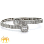10k White Gold Twin Square Cuff Diamond Bracelet with Baguettes and Round diamonds.