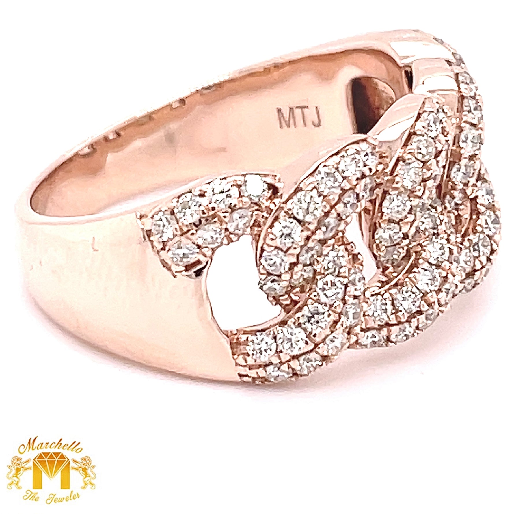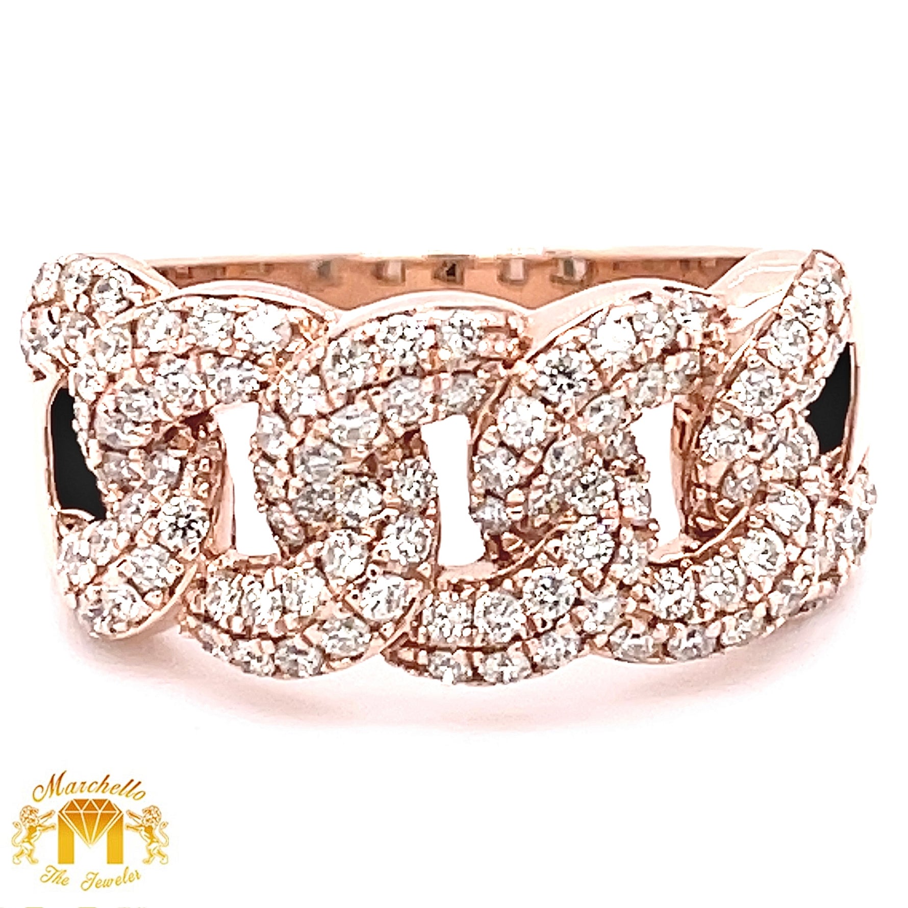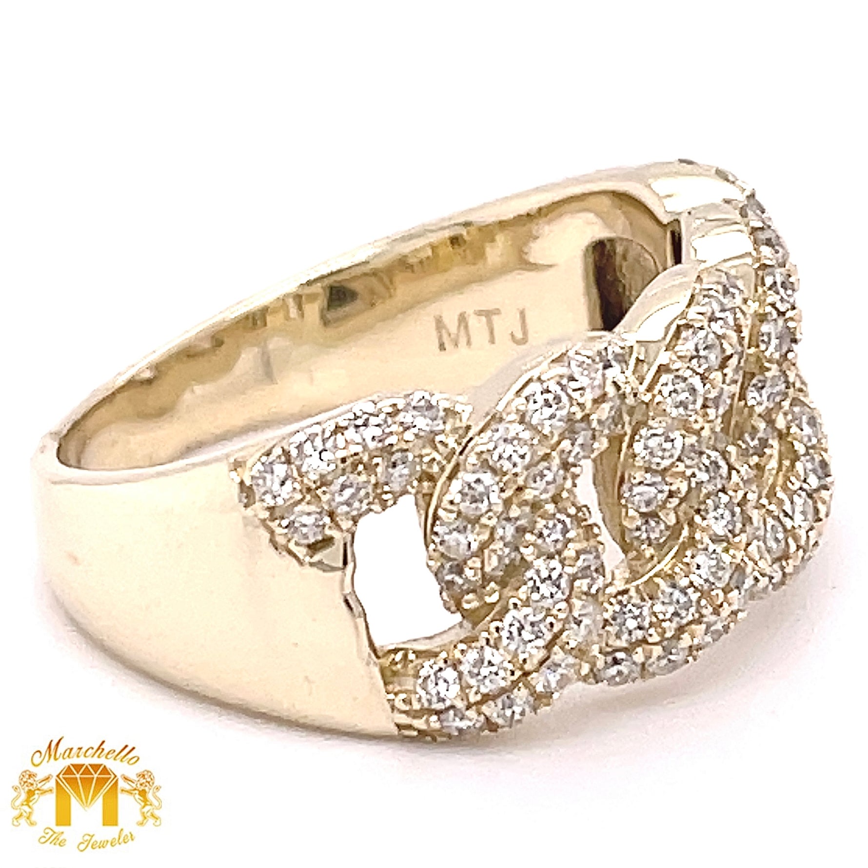 14k Gold Diamond Cuban Link Ring (2 rows)