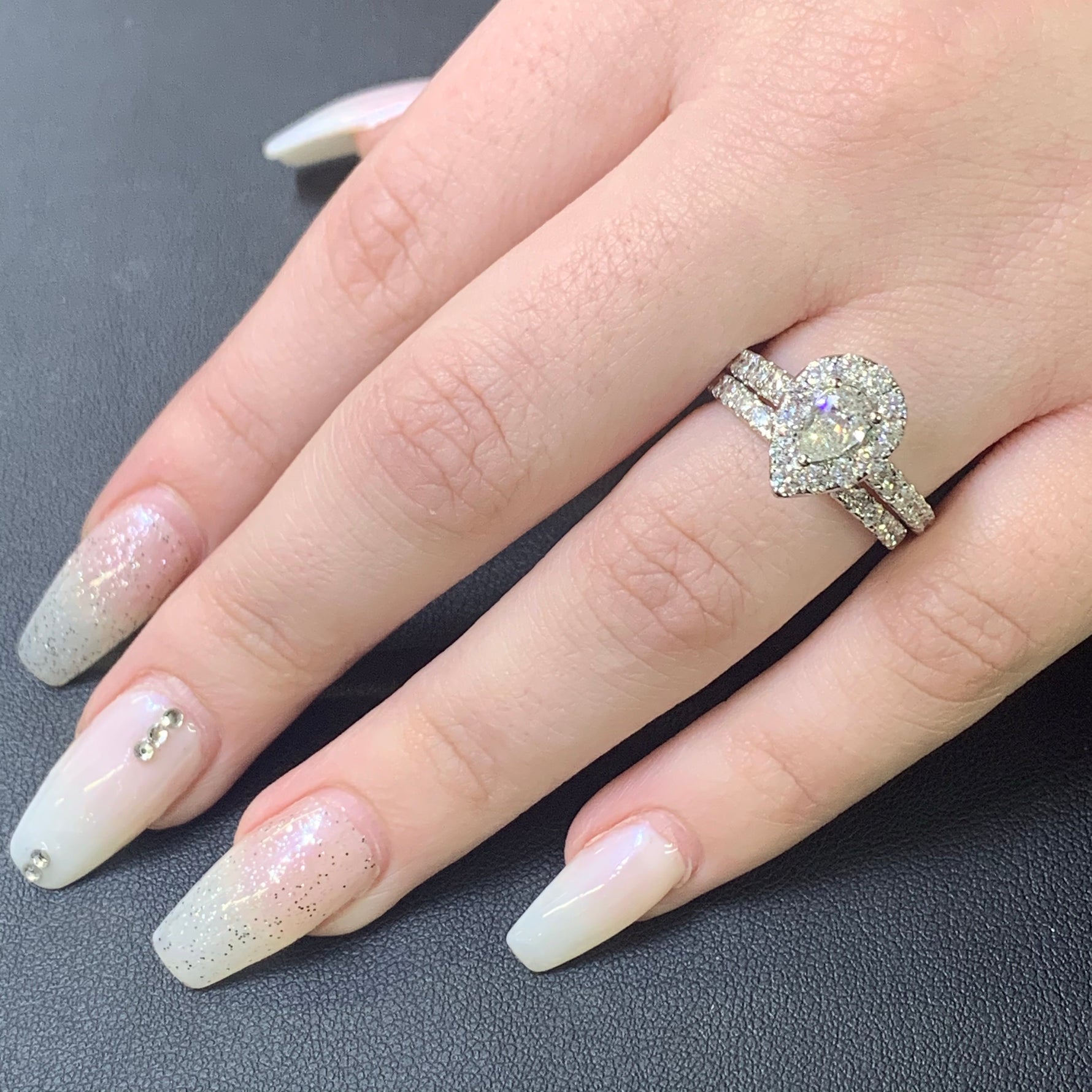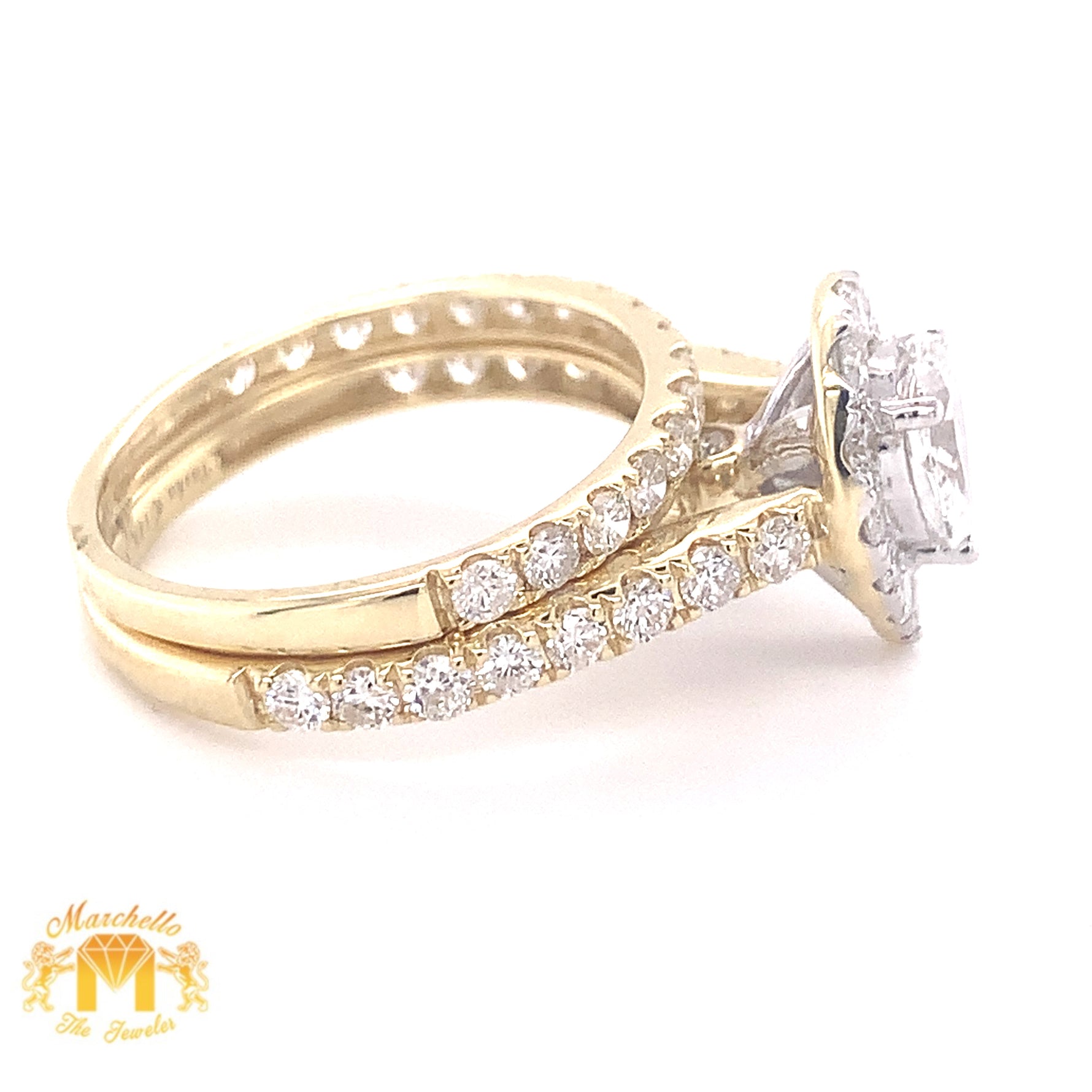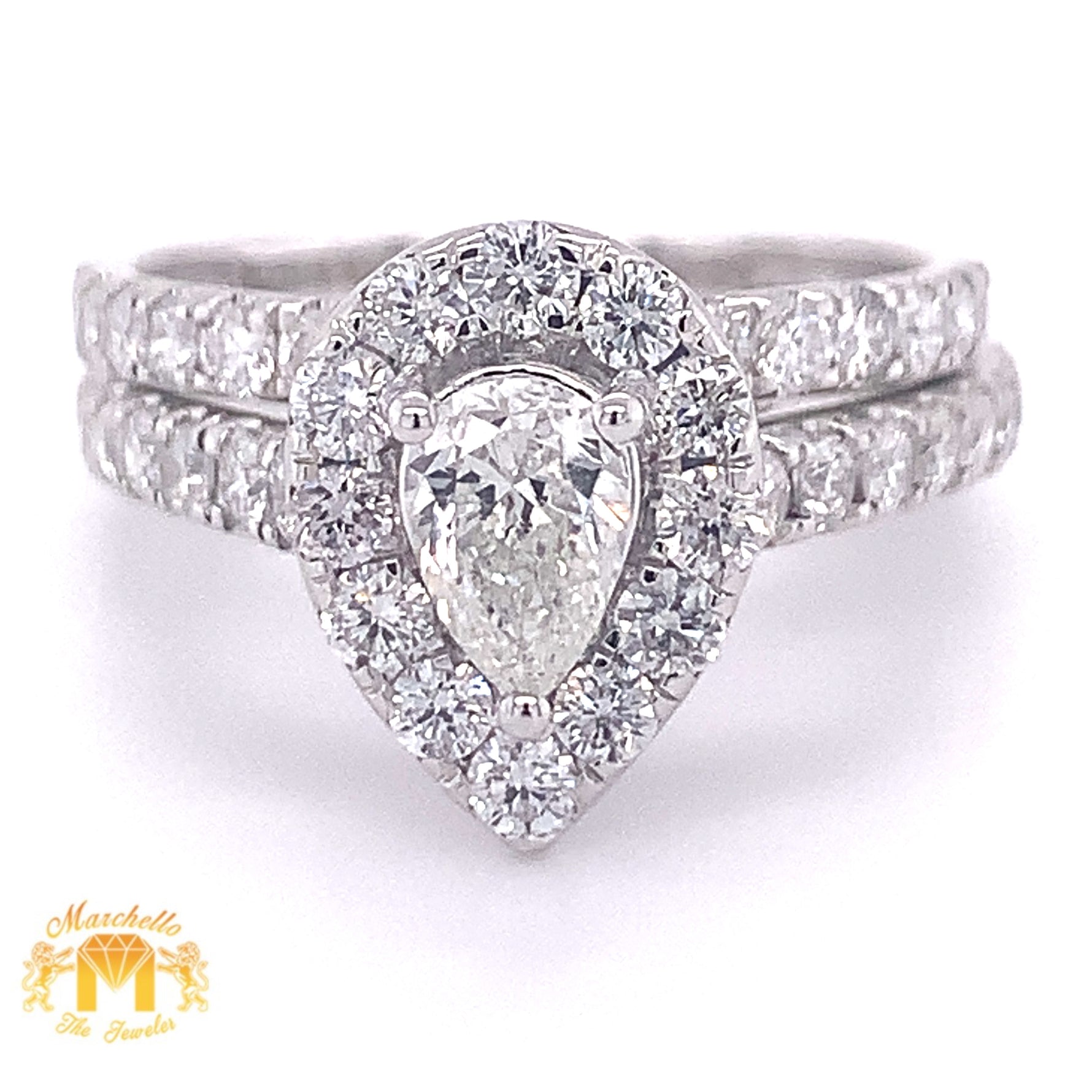 14k Gold 2-piece Bridal Set with Pear-shaped and Round Diamond(pear-shaped center stone)